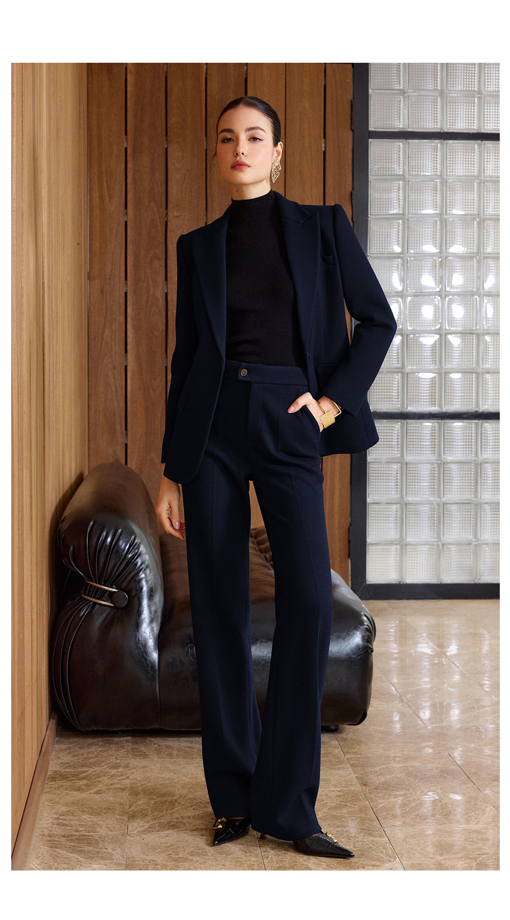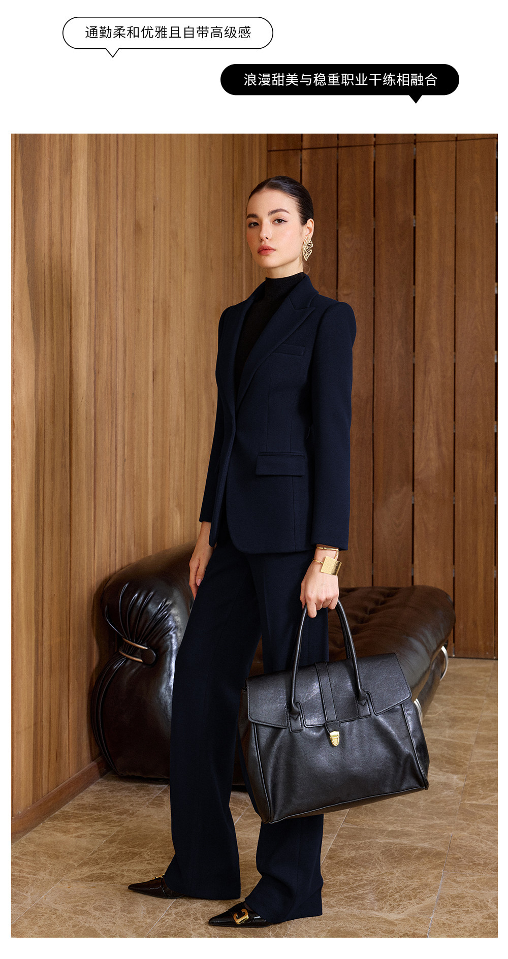 利落的黑色西装线条,