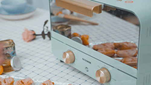 因为平时做饭大多是1-2人份的,又是标准的颜值党,在入手烤箱时先放弃了容量巨大(大概率闲置成碗柜)的大烤箱,入手了这款设计复古时髦、适合1-2人食的圈厨多功能迷你烤箱,对于新手或者只想玩玩烘焙的人也很友好。