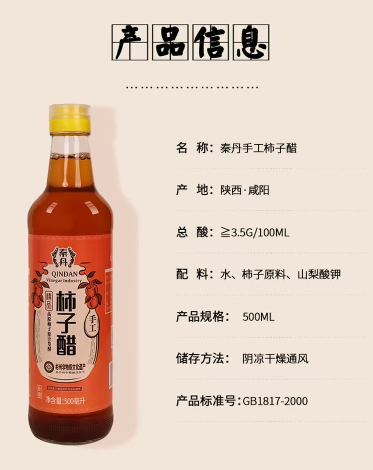 在这个追求健康与美味并重的时代,秦丹手工柿子醋以其独特的风味和丰富的营养价值,成为厨房中不可或缺的调味品。它不仅为美食增色添香,更为我们的健康生活助力!