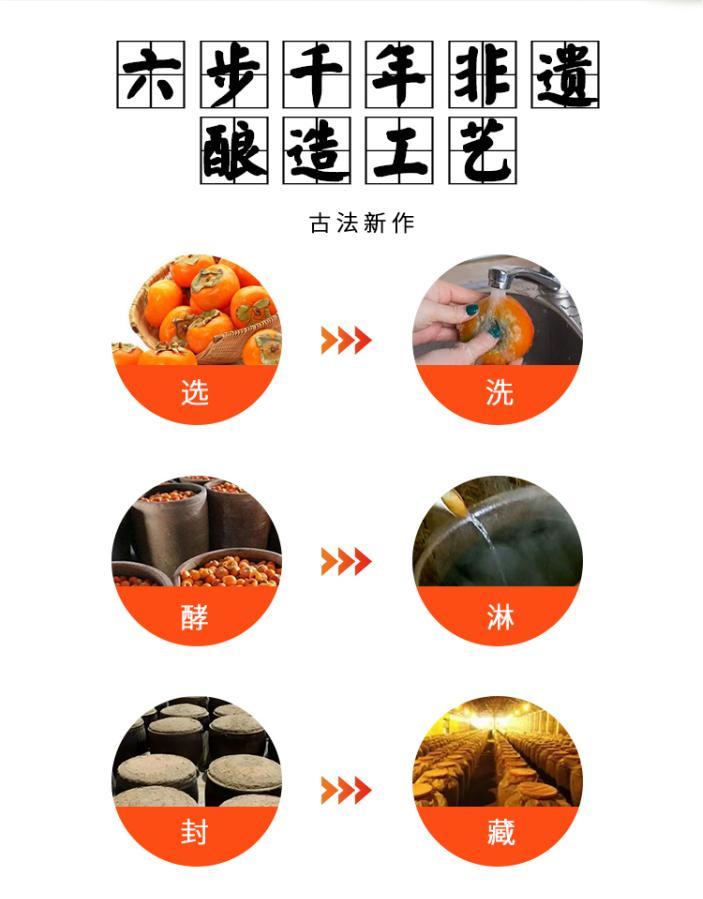 这款柿子醋源自陕西,当地丰富的柿子资源为其提供了丰富的原料基础。而其酿造工艺更是源远流长,遵循古老的传统工艺,采用液态发酵法,历经多道工序精心酿制而成,这份技艺已被列为非遗,凝聚着先辈们的智慧与心血。