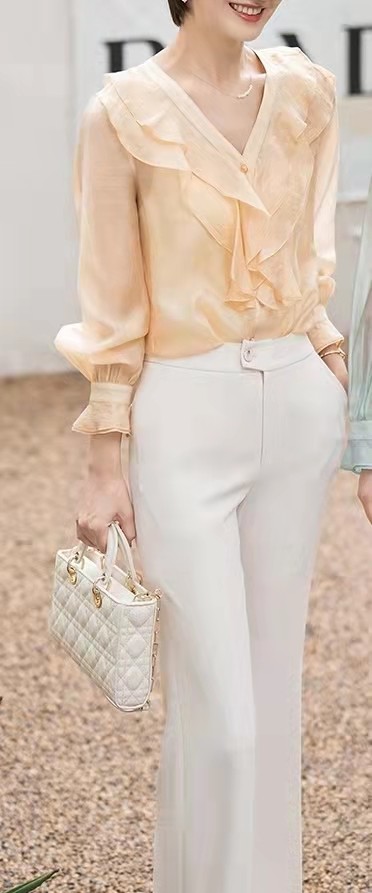 搭配白色阔腿裤又会让整个穿搭增添些许温润的光泽感 一起邂逅一场午后微煦阳光