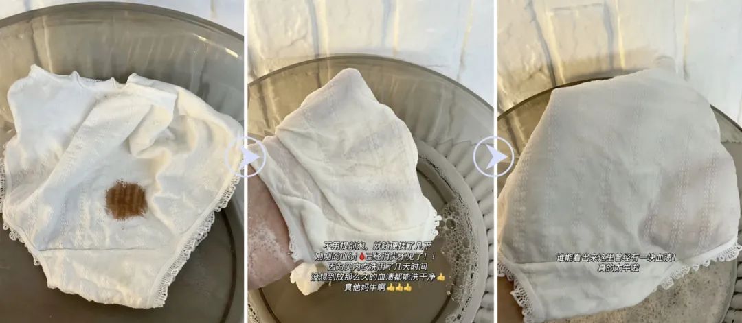 而用它洗过之后,内裤反而像是新买的一样,菌渍全消!