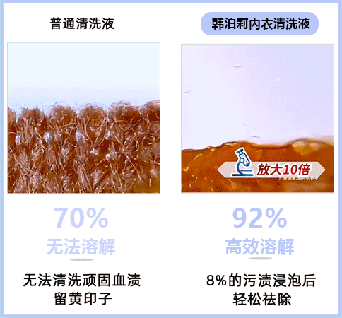 你可以这么理解:用它泡3分钟=手动搓洗上千次,去污能力是普通内衣清洁液的10倍。