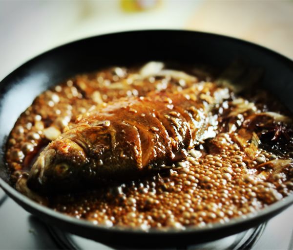 猛料炝锅鱼腥去,糖醋盐调香味起。