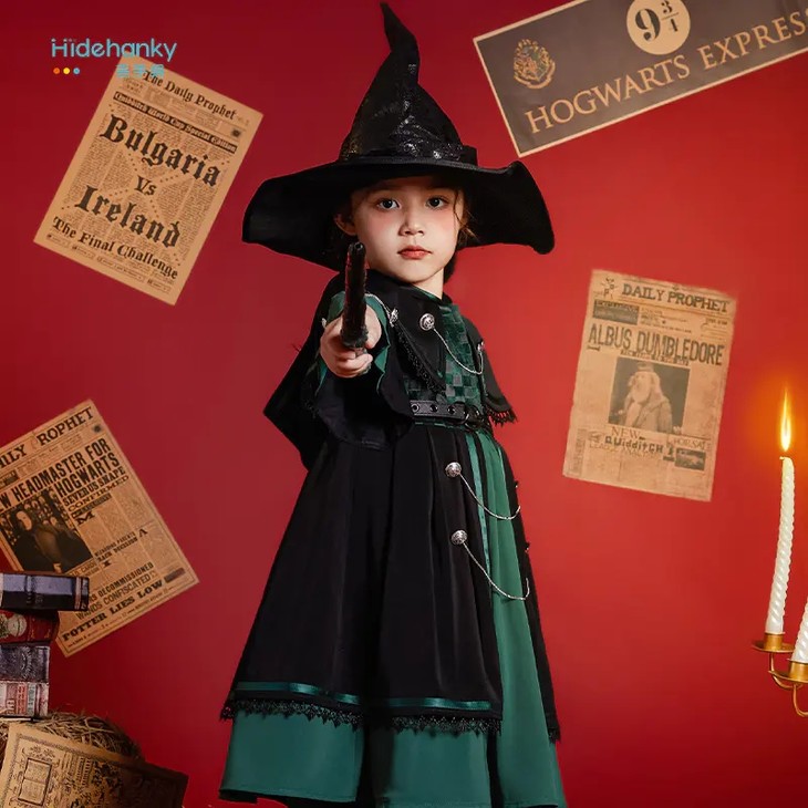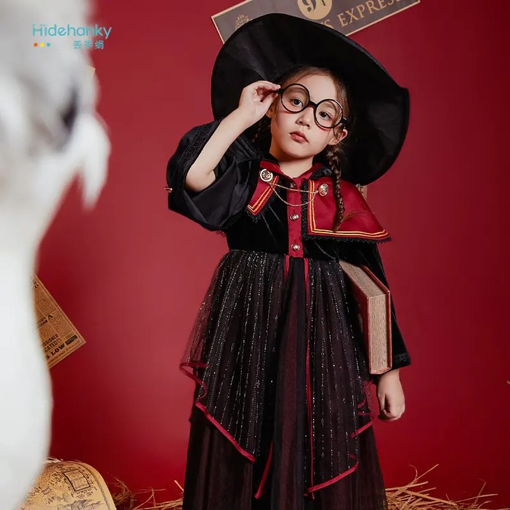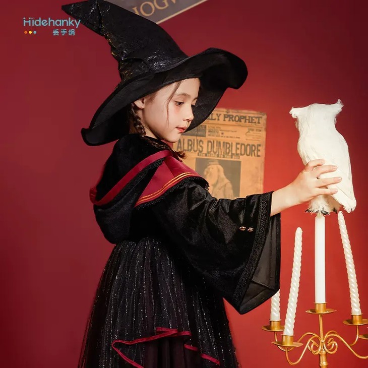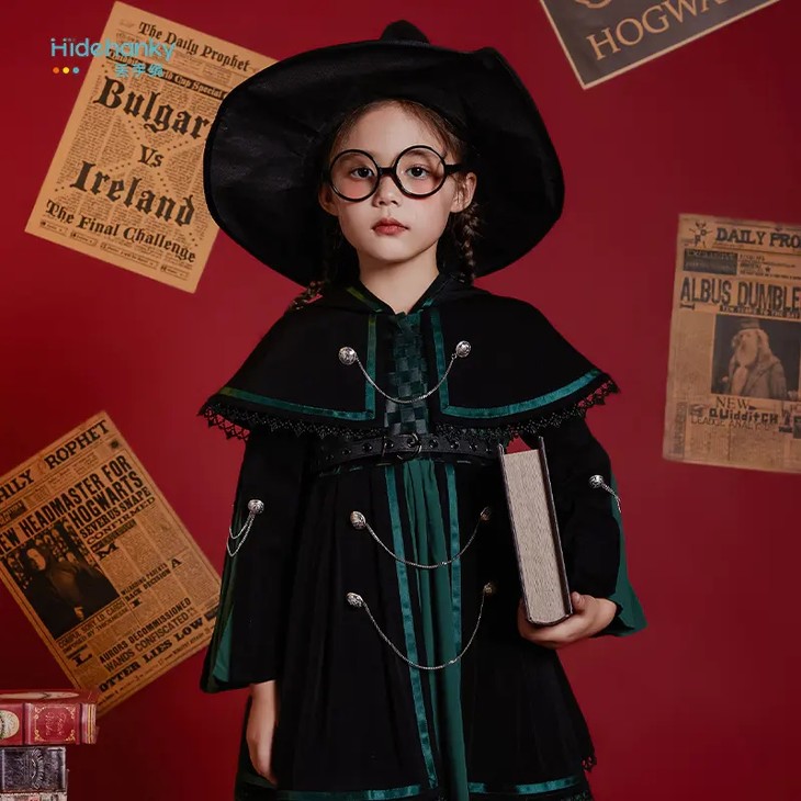 灵感来源为《哈利·波特》系列之格兰芬多学院,它的学生通常都表现出英勇无畏、善良勇敢等特征,格兰芬多的代表动物是狮子,所以,这条狮院魔法袍就诞生啦,暗黑风格,神秘暗黑却又搞怪可爱,快穿上它去讨糖吃吧!