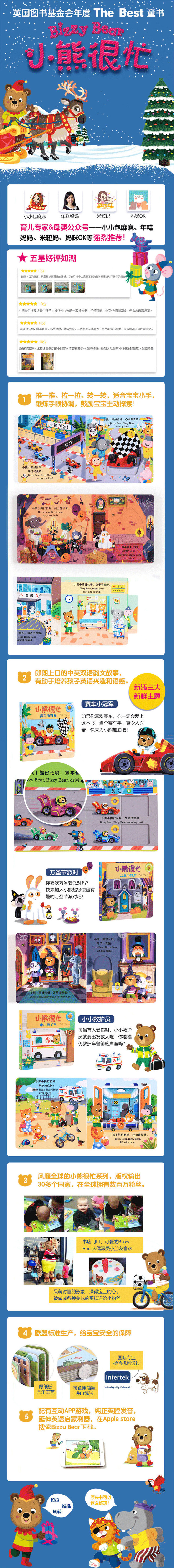 这套书完全超越了我的想象,它能让孩子轻松爱上看书!如果你家的娃已经是个小书虫了,那这套书也会给他一个大大的惊喜,让人兴奋不已的机关设计,郎朗上口的韵文,精妙的翻译,让大人和孩子都会非常痴迷。这一套书每本的主题都不同,海上冒险、太空遨游、参观动物园,不同的故事配上不同的互动机关,小手推一推、拉一拉、转一转、滑一滑,就能看到意想不到的惊喜,既锻炼了小手的灵,又鼓励宝宝主动探索。郎朗上口的中英文韵律歌谣,非常适合用来做英文启蒙。