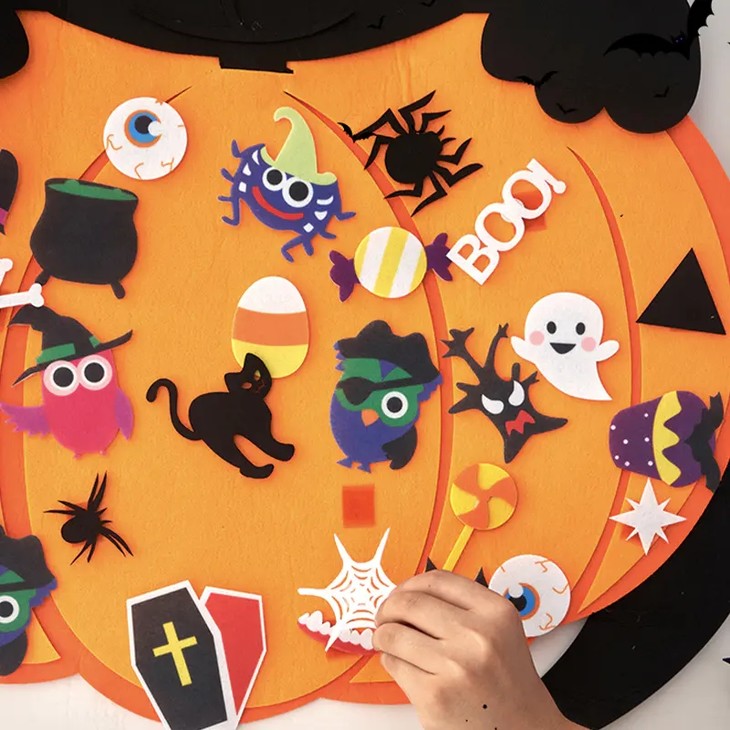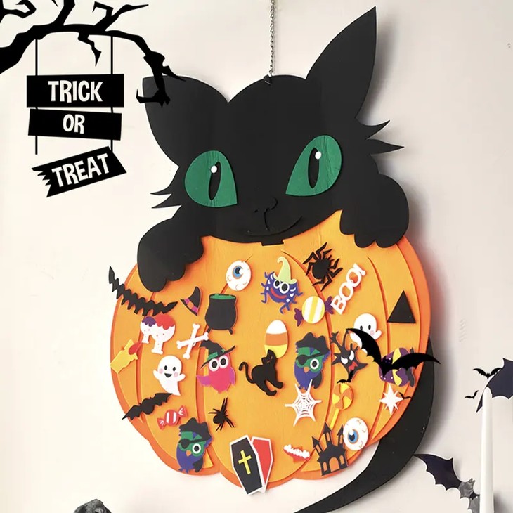 让家里的大白墙变一变,围绕万圣节的常见图案——黑猫,蝙蝠,幽灵,蜘蛛等形象,用简单的材料制造墙贴或悬挂的装饰物,不需要花费太长的时间,小小的变化就改变了家里的氛围,也让孩子们对节日充满了好奇和期待。