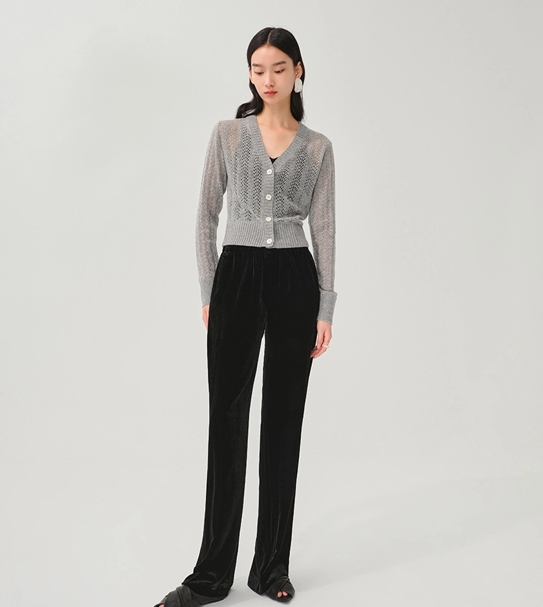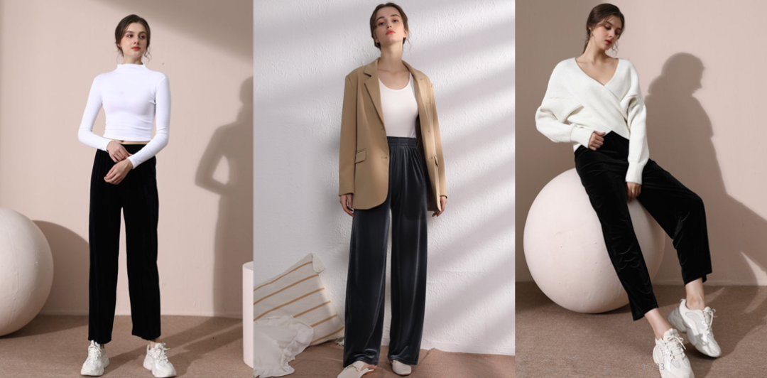 新品尝鲜福利|桑蚕丝与金丝绒结合的时髦长裤,低调穿出超模腿!