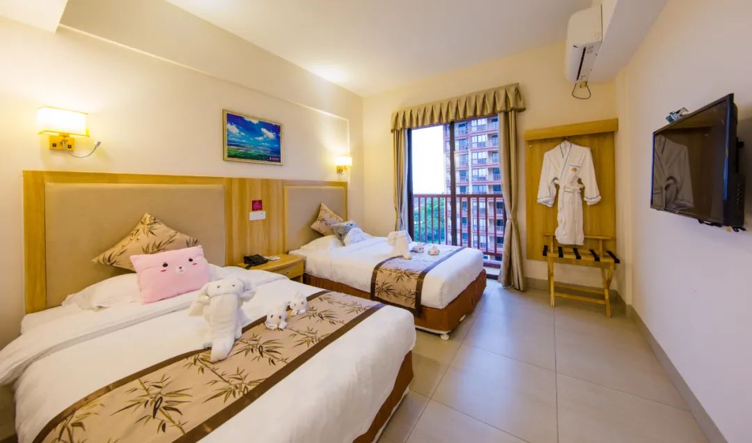 每个单间都拥有超大的客房活动空间,40多平的房间设计。90%以上为子母床的设计,家庭出行的最佳之选。除此以外,套间更配有迷你厨房以及吧台,让您在外旅行也有家的感觉。