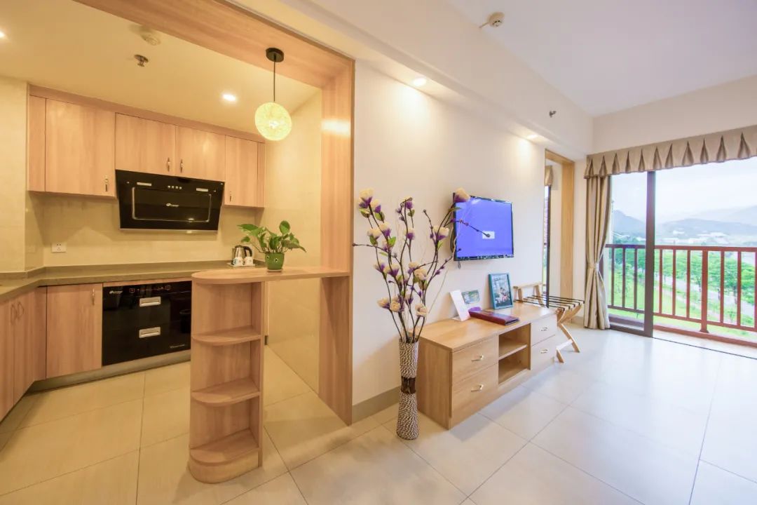 古兜山海温泉酒店共拥有三种房型,除单间套房以外,还设有两房一厅和三房一厅的户型,与单间套房一样拥有迷你厨房和吧台,超大的活动空间。多户型的套房适合家庭多人出行,公司轰趴等团建活动。