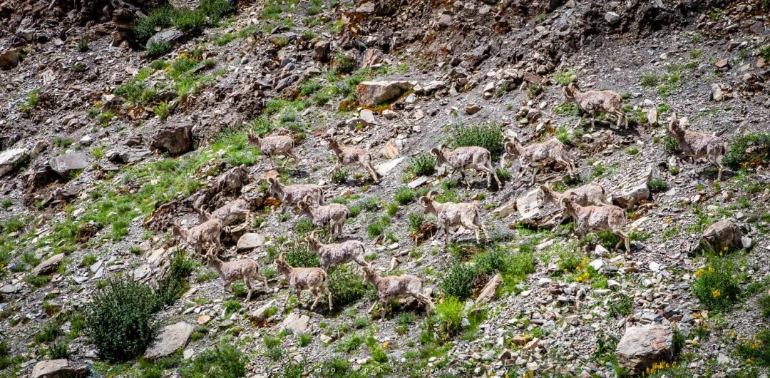 ▲ 大家来数数画面里有多少只岩羊,说实话,要不是小朱眼神不错,我根本发现不了他们的存在。