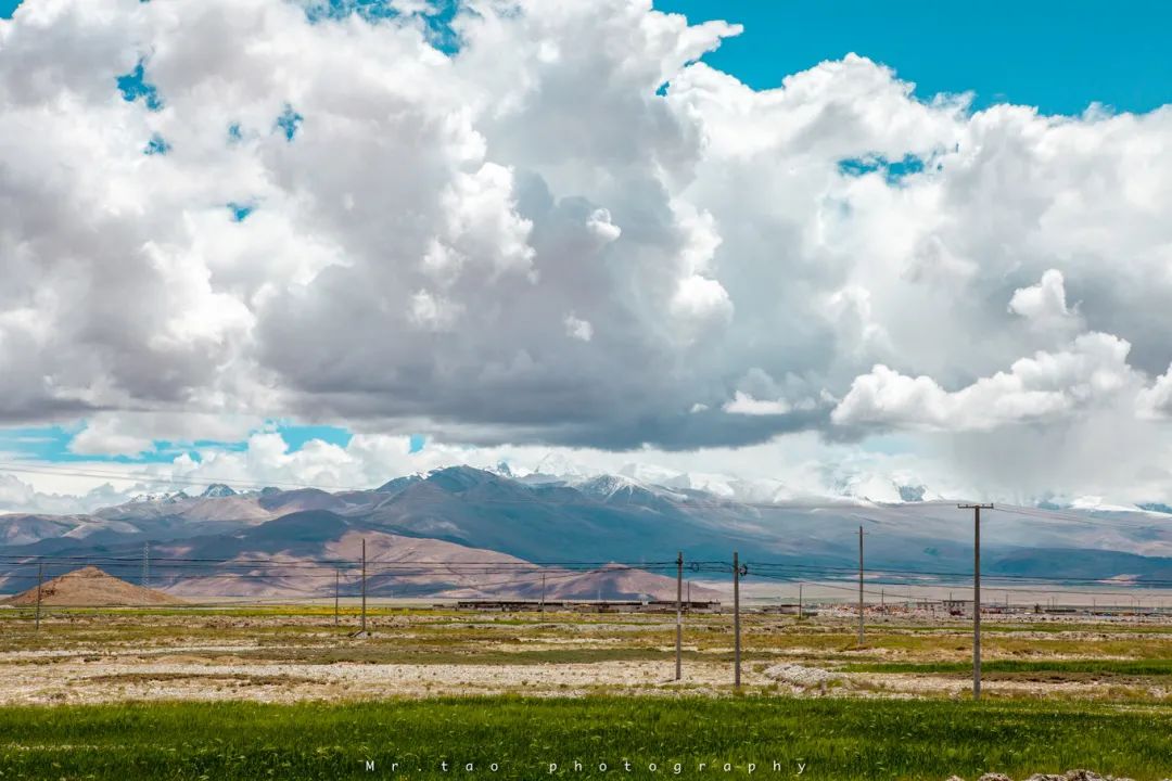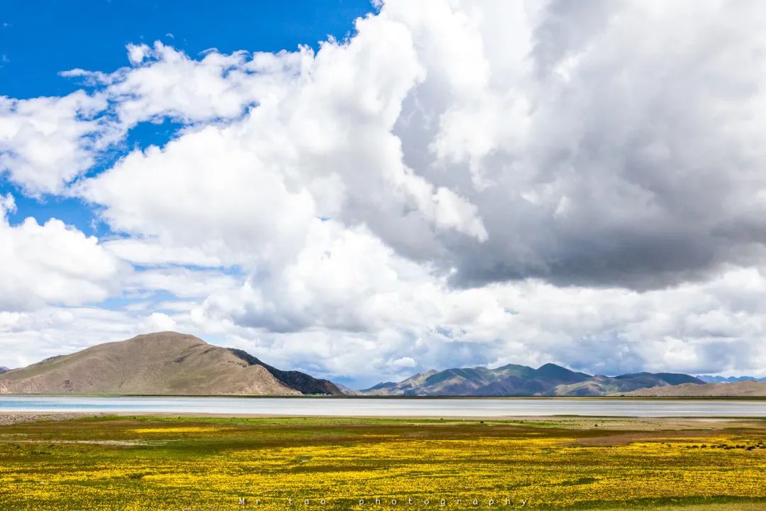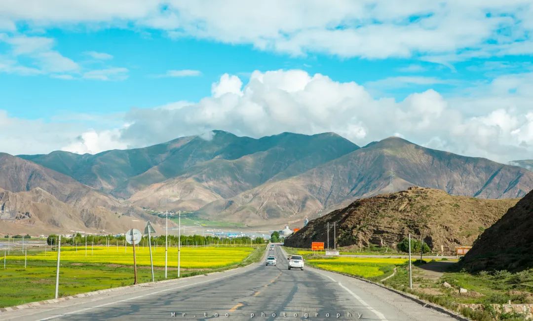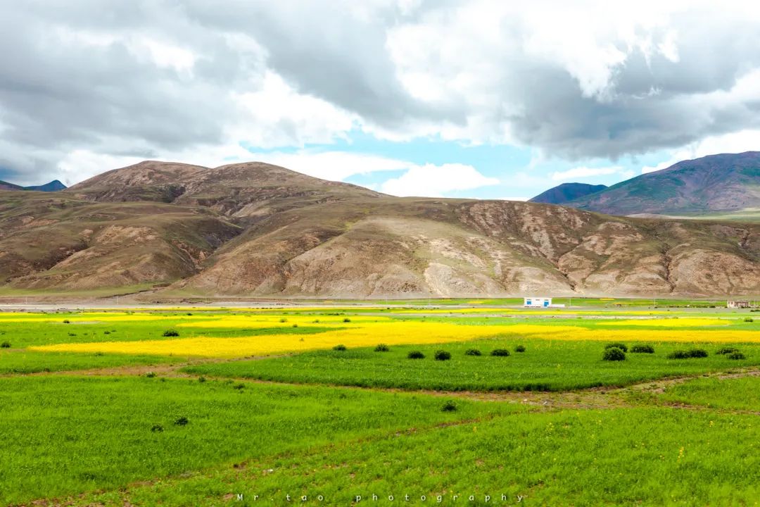 一路走一路变,两旁慢慢变成了平原似的景象。油菜花也只有这个季节才能看到这种景象,竟然有点让我恍惚。在我的印象里,西藏似乎应该一直是秋末景象,这次来真是给我一个意外惊喜。天空中的云也是我的最爱,它总是让我充满了想象力。