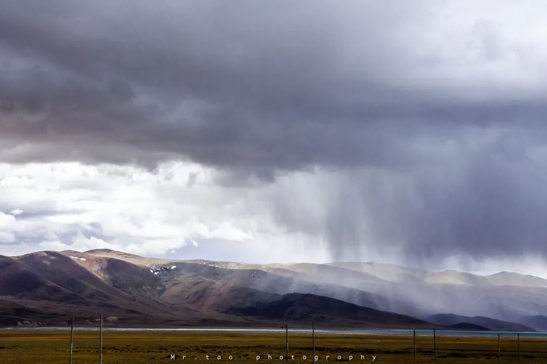 ▲ 远处云中的雨,就像上帝的眼泪,滋润的这片本应该属于这里的大地。