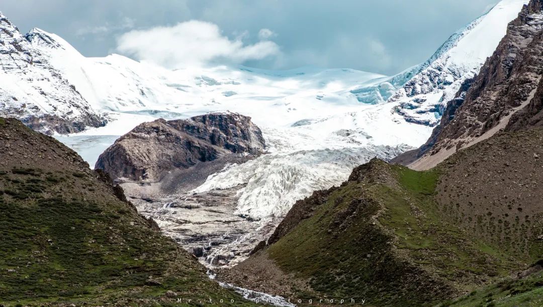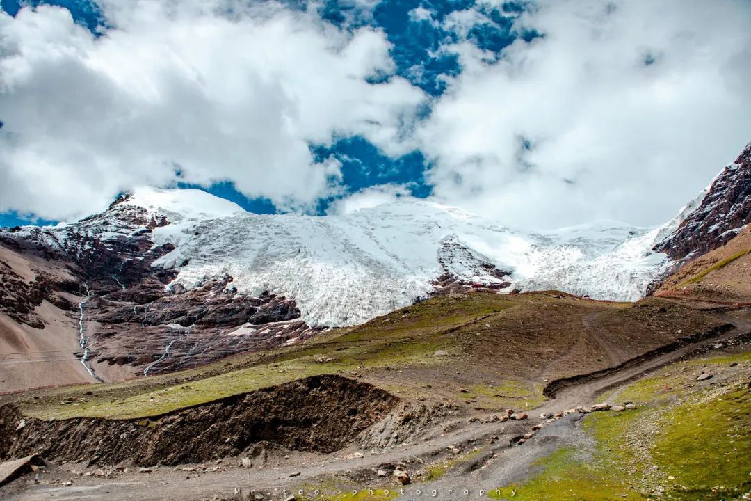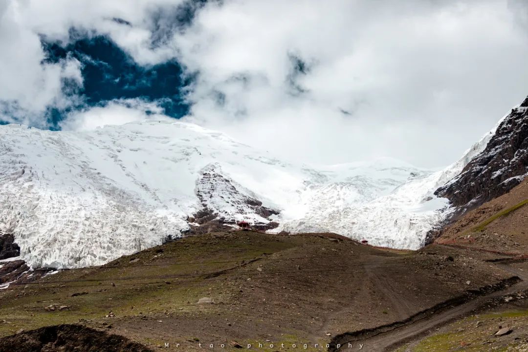▲ 卡若拉冰川,在乃钦康桑雪山下。雪白的冰川如一副巨型唐卡挂在山壁上,在阳光的照耀下熠熠生辉。