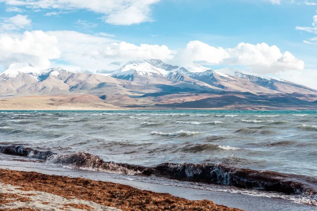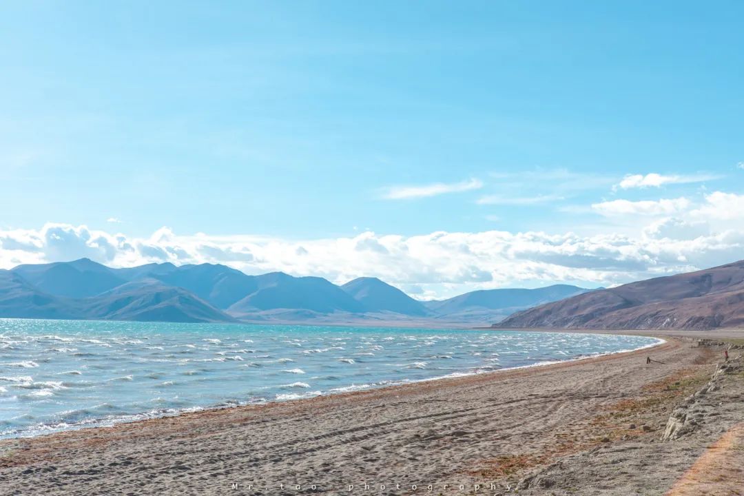 从垭口一路向下,岗巴拉雪山不远有一段很长的沿湖公路,在此停车驻足,或徒步至湖边,就可以近距离接触这片神圣的湖水。沿途很长,建议可以往深处走一段,远离扎堆的游客。