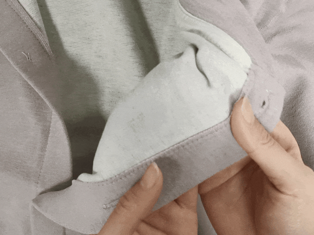 而蓝哚采用的是柔软的绵羊毛搭配天然桑蚕丝,光看这个面料组合,就能感觉到温暖了。要知道,羊毛纤维中的天然卷曲能够夹住空气,形成保温层,有效地抵御寒冷,无论天气多么严寒,都能保暖锁温。桑蚕丝素有“纤维皇后”美誉,具有飘逸滑爽、轻柔透气的特性。用它做出来的面料,质地轻揉细腻,跟肌肤的摩擦力很小。穿上它的那一刻,皮肤会感受到绵软顺滑,手感软软糯糯,带有丝滑的毛绒感,简直爱不释手!再加上里外是面磨毛工艺,贴身穿就像窝在毛茸茸的毛毯上~贴肤穿一点都不刺痒,舒适度比普通保暖内衣高了好几倍。