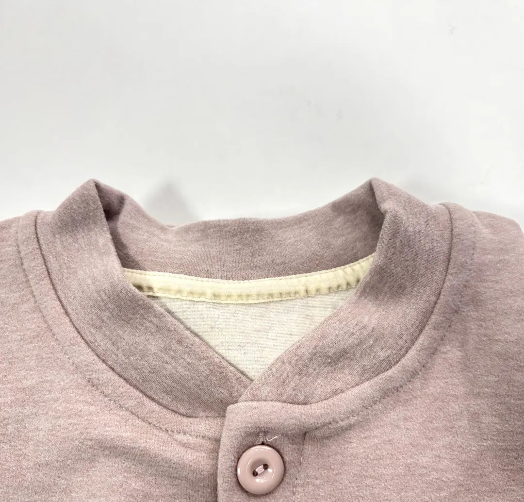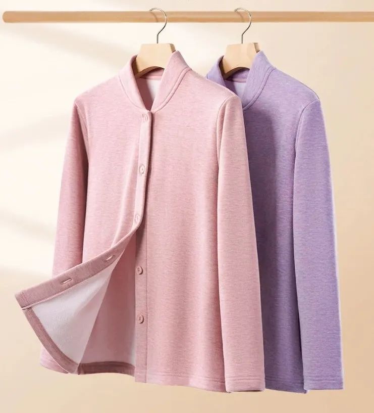 开衫的设计,既包容身形,穿脱也更方便,一些患有肩周yan的长辈就不用辛苦举高手脱衣服了。可以当睡衣、家居服;也可以在里面穿个内搭当外套,天气没那么冷的时候直接穿出去都ok!小立领的款式,可以为脖子挡点风,又不会像全高领一样勒脖子,穿着舒适度提高不少。