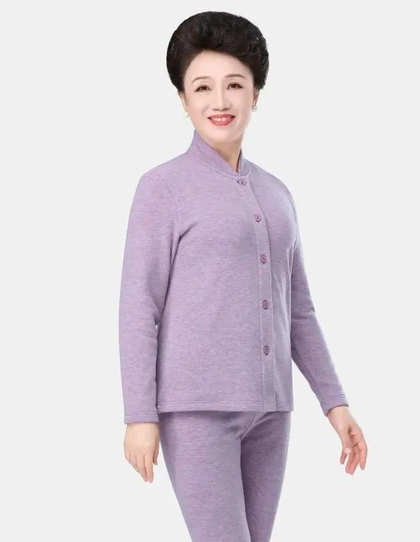 保暖内衣是四线六针无骨缝合而成,缝线针脚细密服帖,中老年人穿着特别舒适自在。
