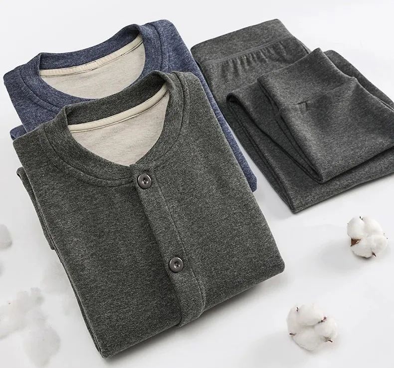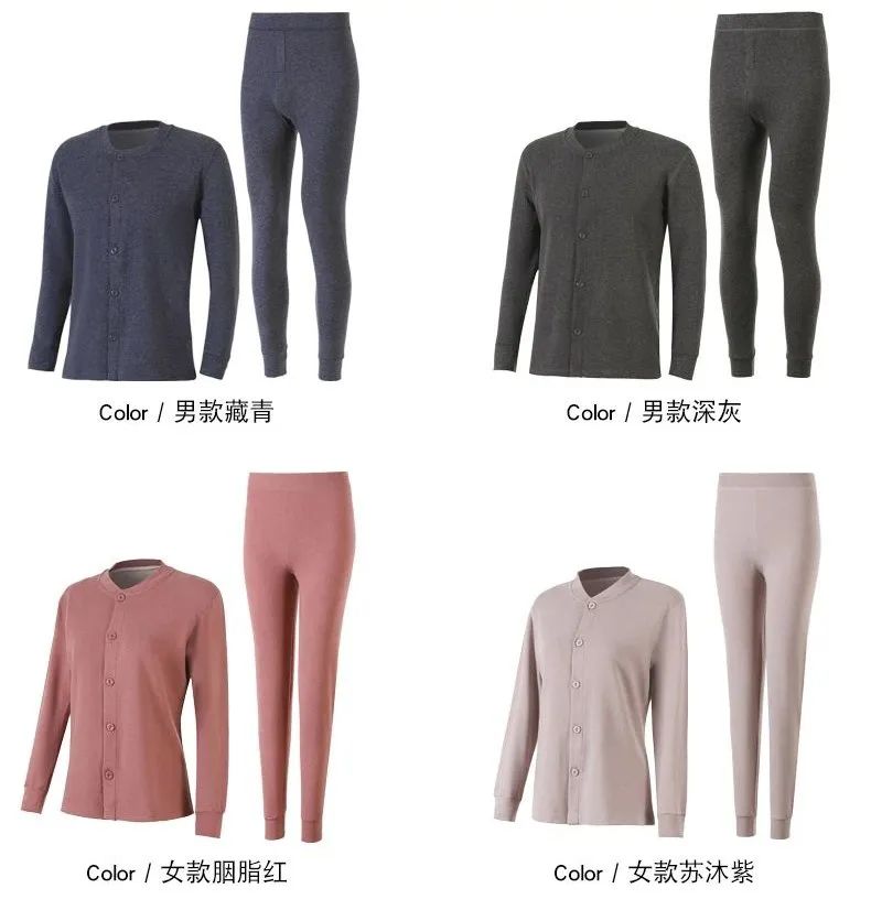 男款裆部还设计成无纽扣的样式,不仅穿着舒适,上厕所时也很方便。袖口和脚口做了加长处理,不仅保暖效果好,还能紧紧贴合手腕脚踝,防止冷风灌进身体。