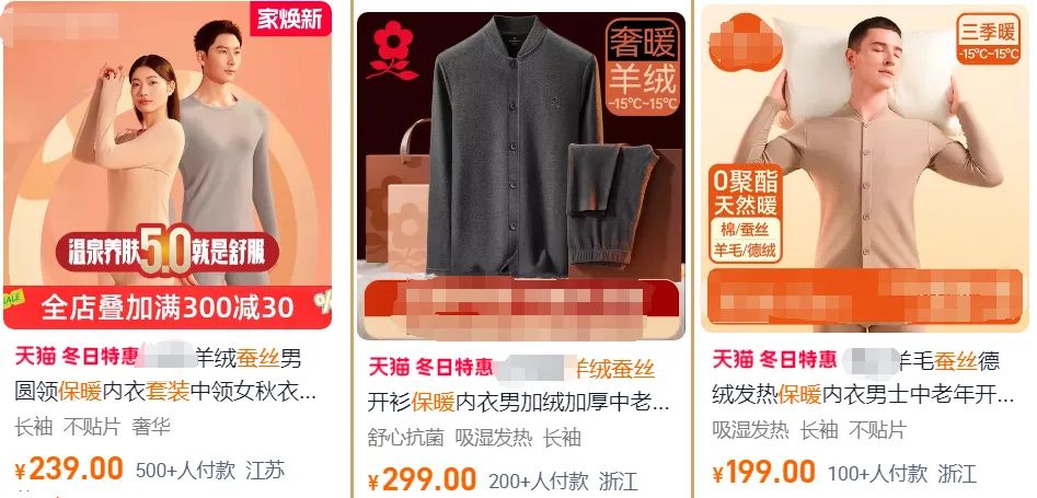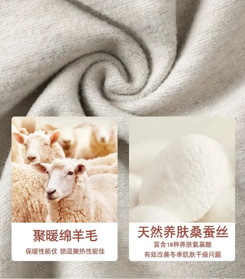 这样一套含羊毛和桑蚕丝的保暖套装,某宝上一搜都不便宜!