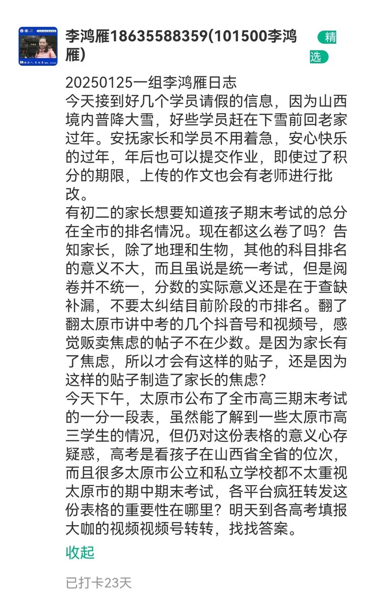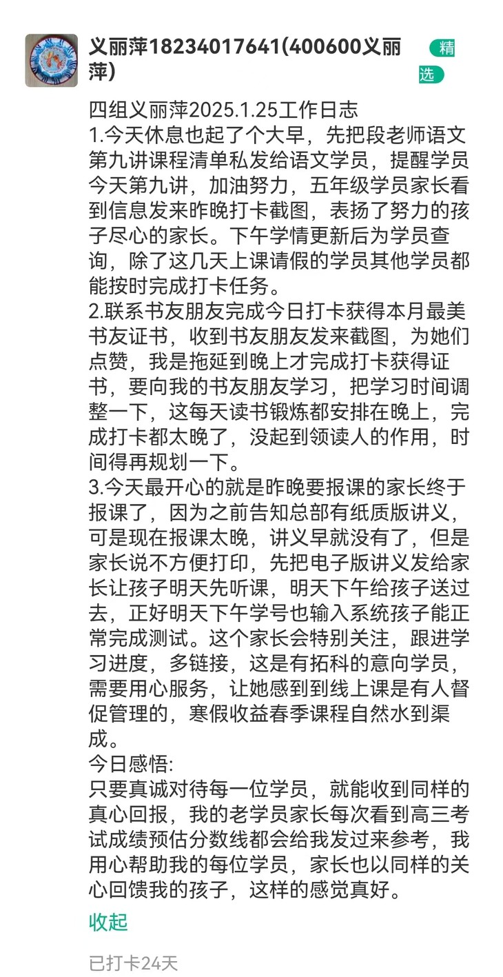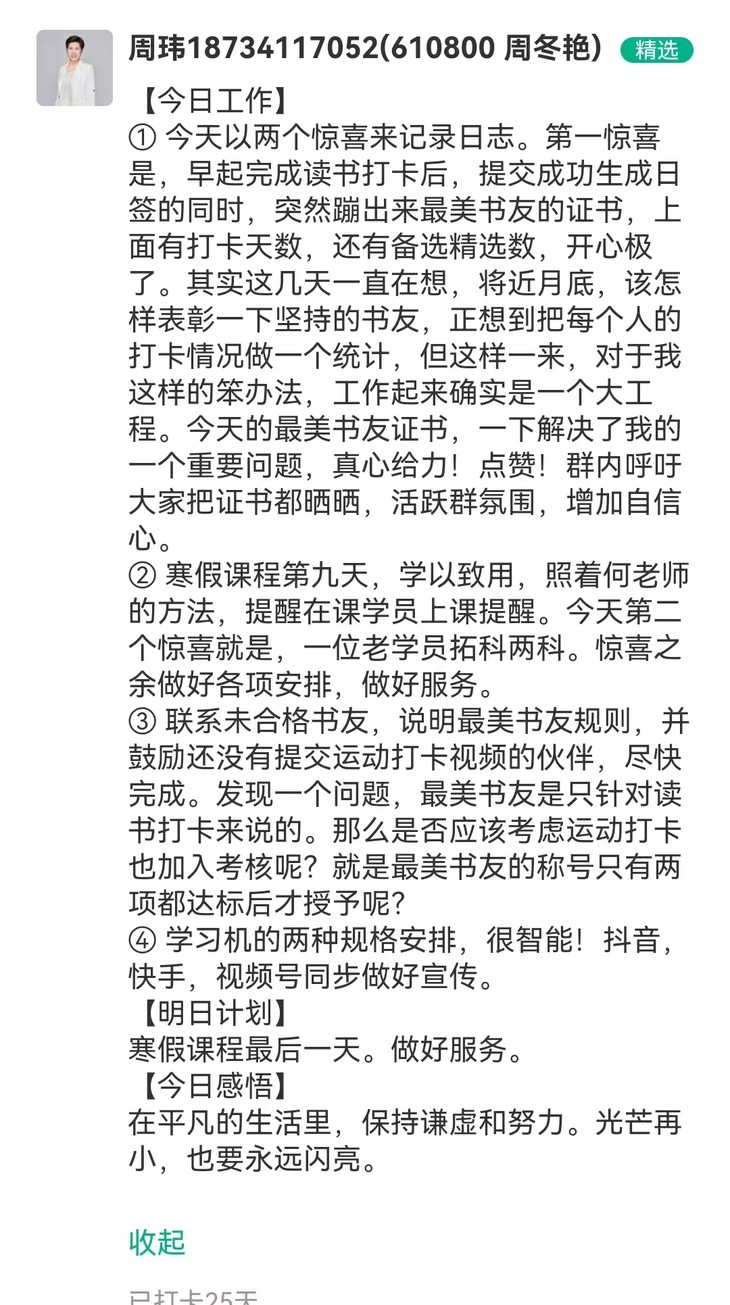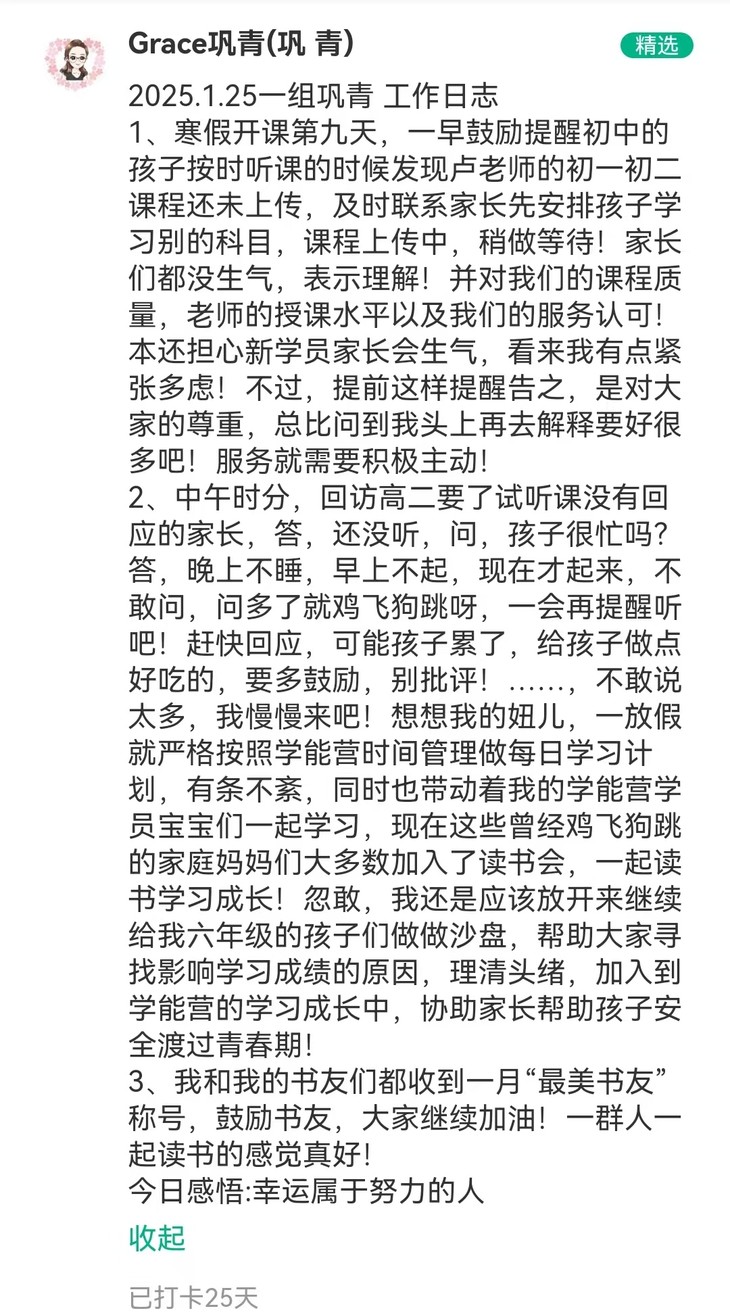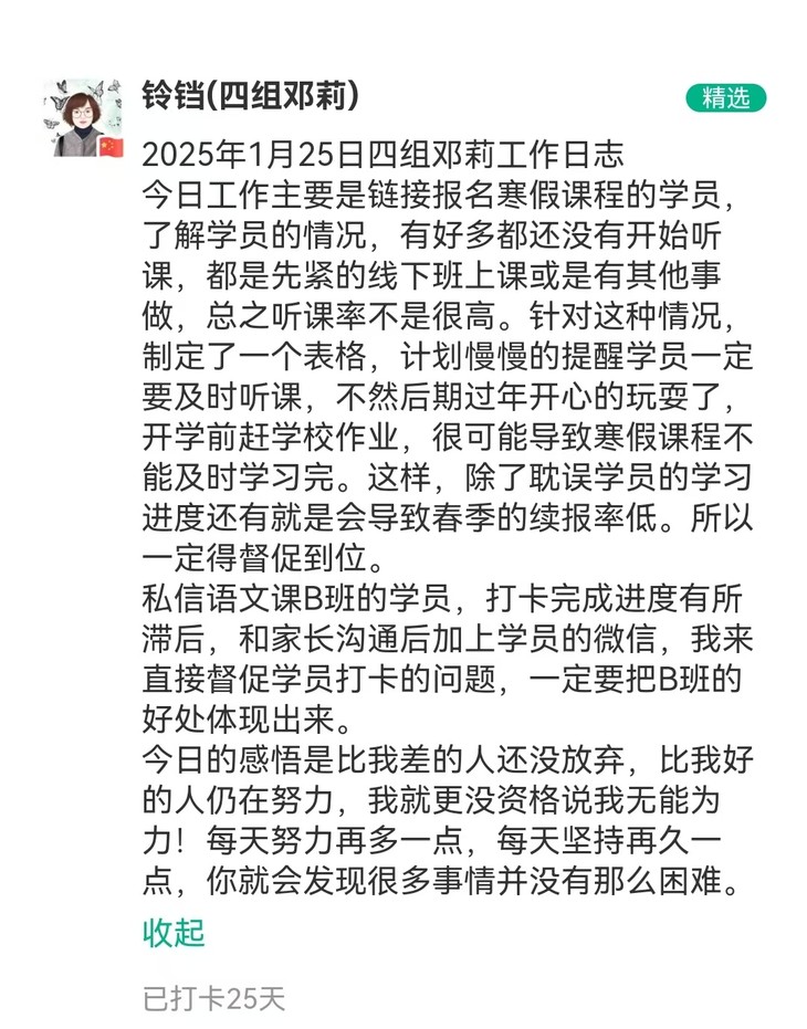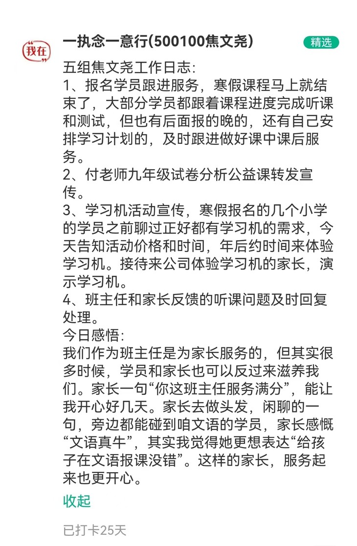 文语课堂1月25日班主任日志打卡精选合集