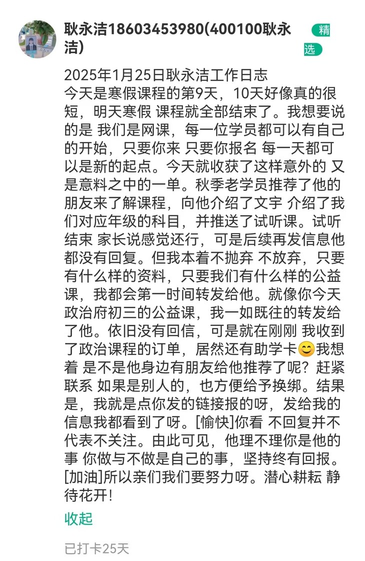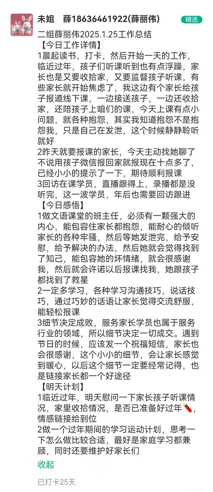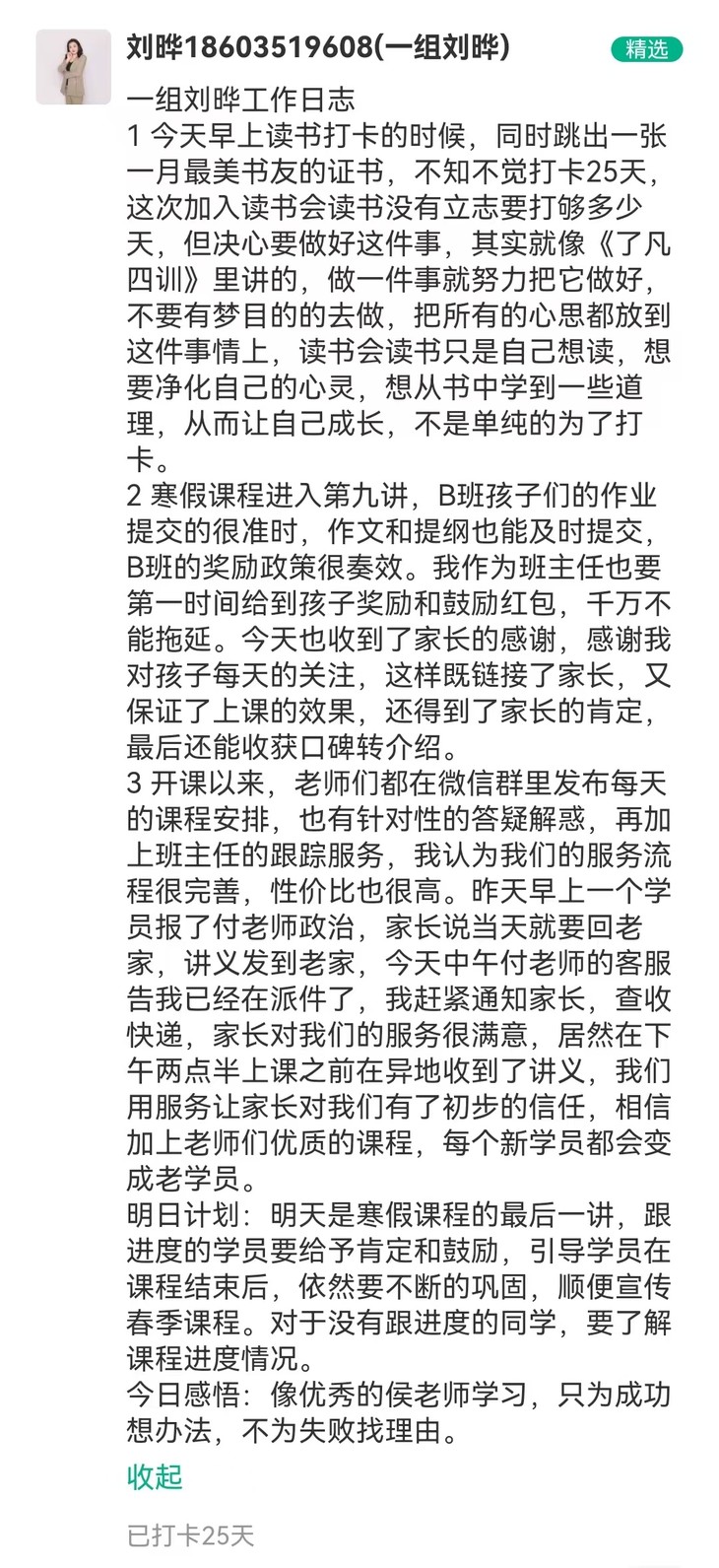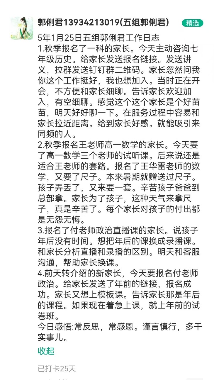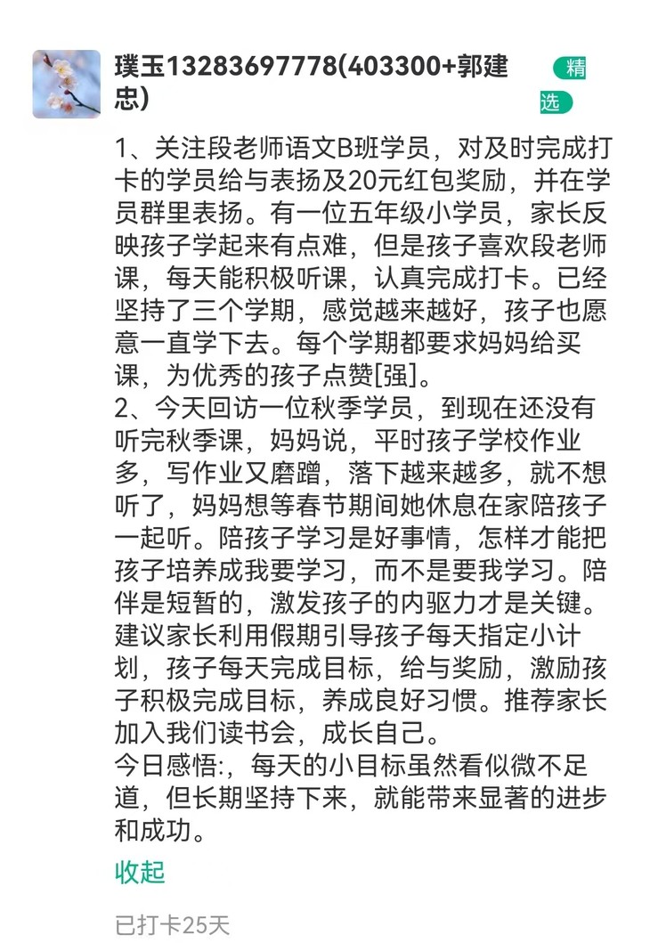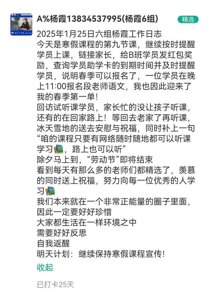 文语课堂1月25日班主任日志打卡精选合集