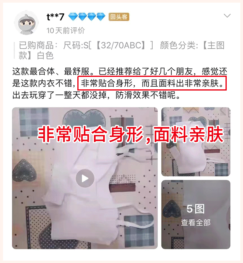 比普通内衣更显纤瘦,穿一整天也不会跑位、溜肩。