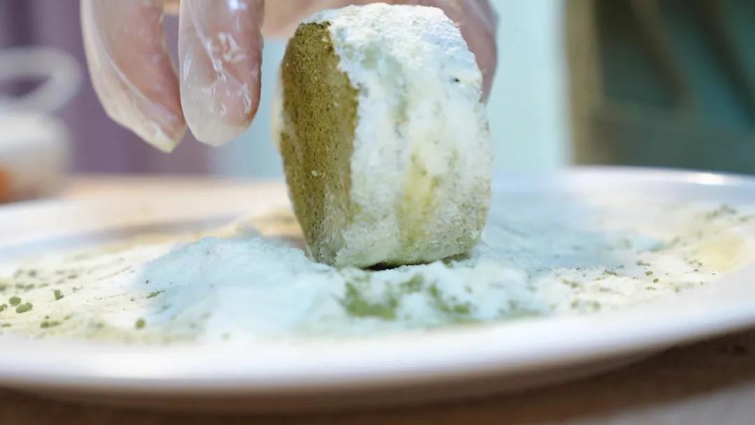 浓浓的奶香,搭配味道清新的抹茶、入口即化的奶酪酱、软糯香甜的抹茶蛋糕,外面还有一层薄薄的奶粉,咬一口瞬间沦陷!