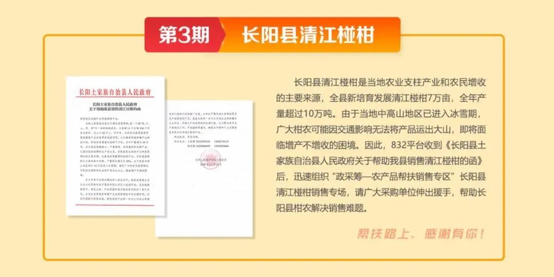 湖北供销合作电商通过旗下长阳子公司了解到滞销情况后,提出指导建议方向,借助贫困地区网络销售平台(“扶贫832平台”),呼吁社会力量予以帮助。经过湖北省合作电商公司、长阳夷农电商公司与中国供销电子商务有限公司沟通后,向当地人民政府申请助销函(《长阳土家自治县人民政府关于帮助我县销售清江椪柑的函》),中国供销电子商务有限公司在接到下函通知后,迅速组织建立“政采筹——贫困地区农产品帮扶销售专区”长阳县清江椪柑销售专场,力争在严寒来临之前帮助更多该县果农销售椪柑产品,助力该县椪柑销售。