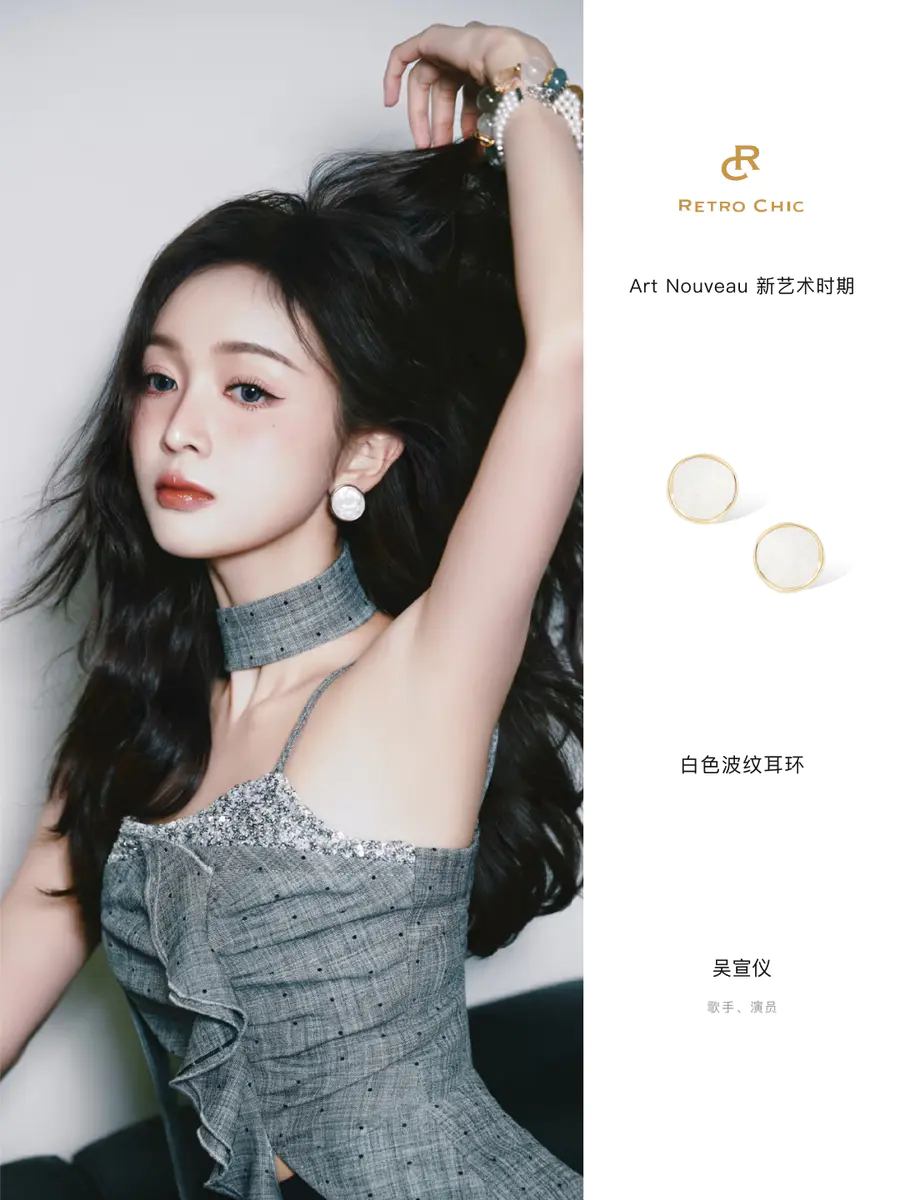 歌手、演员吴宣仪佩戴Retro Chic🇮🇹 Art Nouveau 新艺术时期 白色波纹耳环