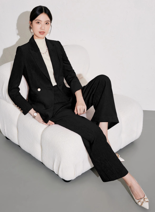 双扣量感廓西+干练微喇裤在柔和中塑造棱角