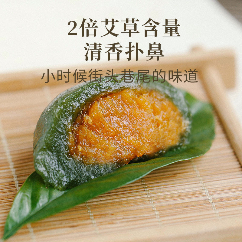 颜色会比常见的青团更暗绿一些艾草香味上也会比一般的青团更重一些
