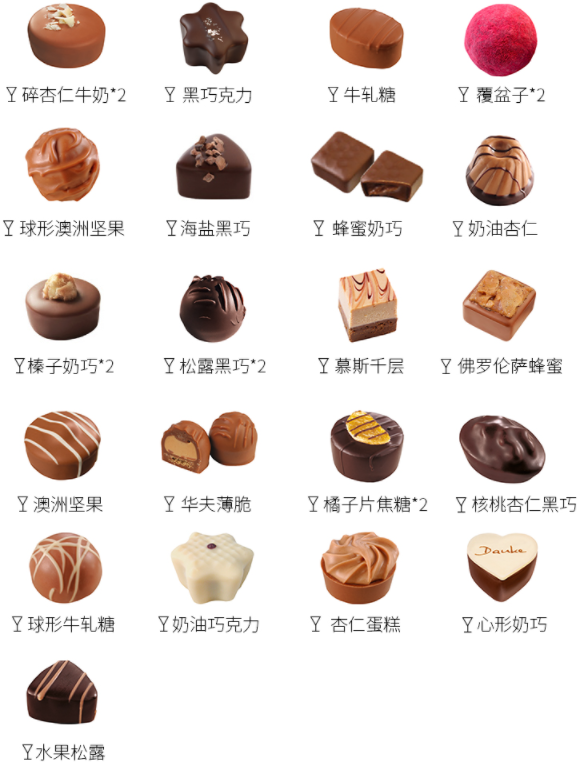 这款圣诞礼盒里有26颗巧克力,21种不同口味和造型,包含了香甜白巧克力、丝滑牛奶巧克力和醇厚黑巧克力,松露黑巧、华夫薄脆、杏仁蛋糕、澳洲坚果、水果松露、慕斯千层……口味更是史上最全!