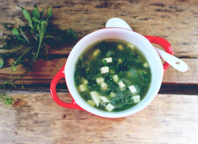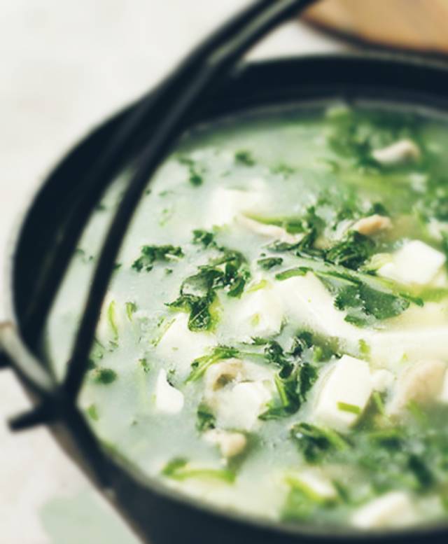今天我们做一道野菜汤羹:荠菜豆腐羹!