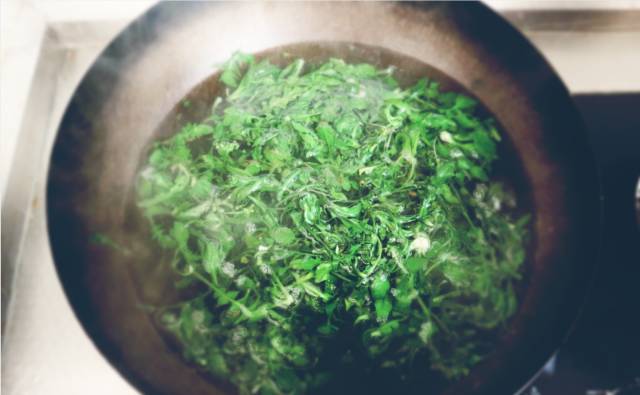 3、要保持荠菜出锅后的碧绿颜色,煮汤过程中记得一定不要加盖。荠菜一经加盖焖煮,即刻显现颓废的暗黄,味不差,色招嫌。
