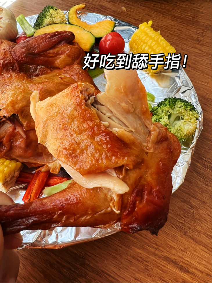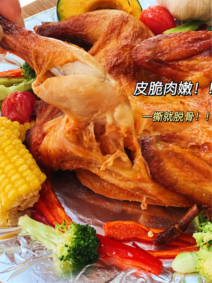 这个脆皮烤鸡刚出锅五分钟就被炫没了