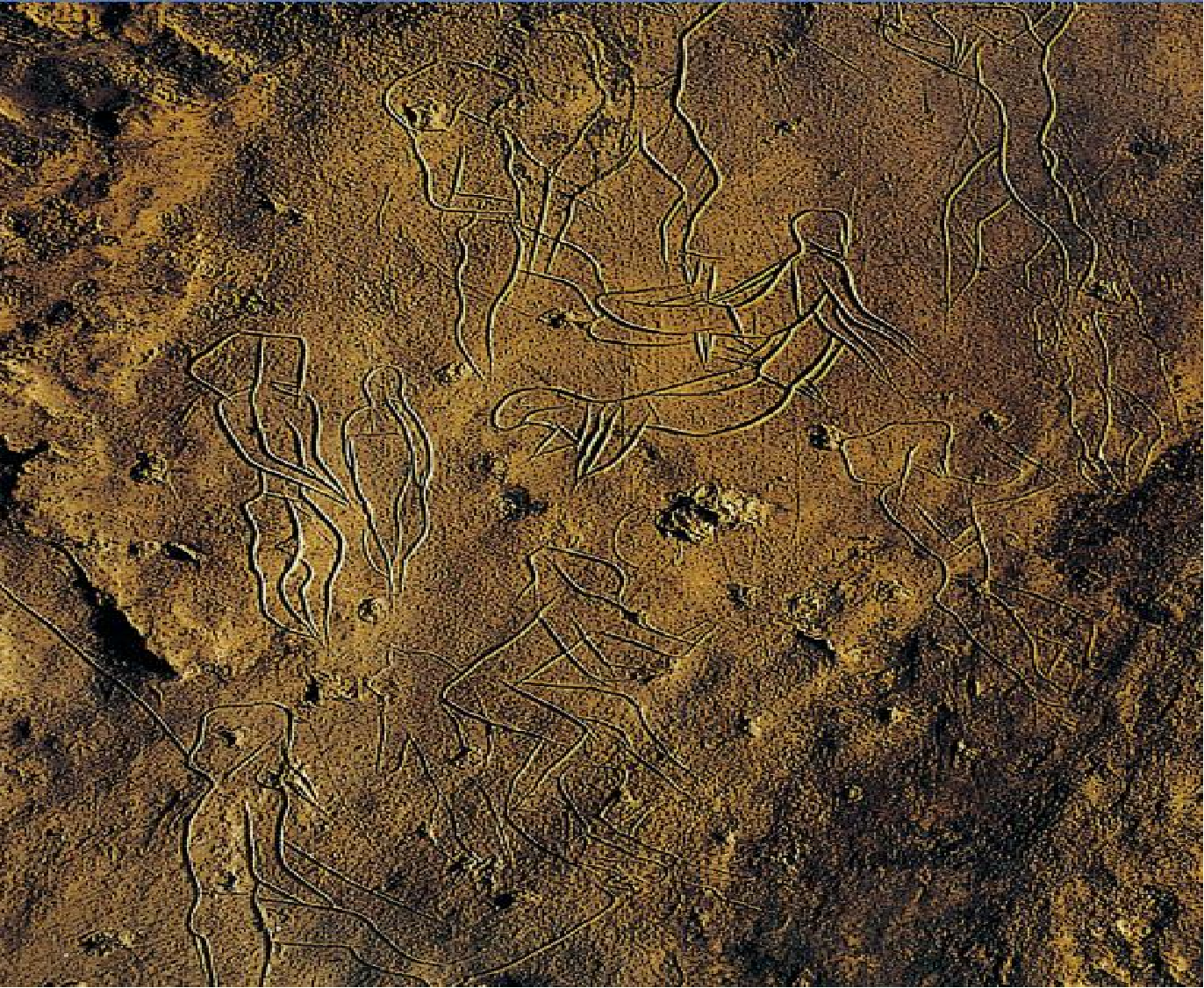 约公元前10000年,意大利西西里岛的一块石面上石刻人物群像,被称为中石器时代艺术作品的象征。