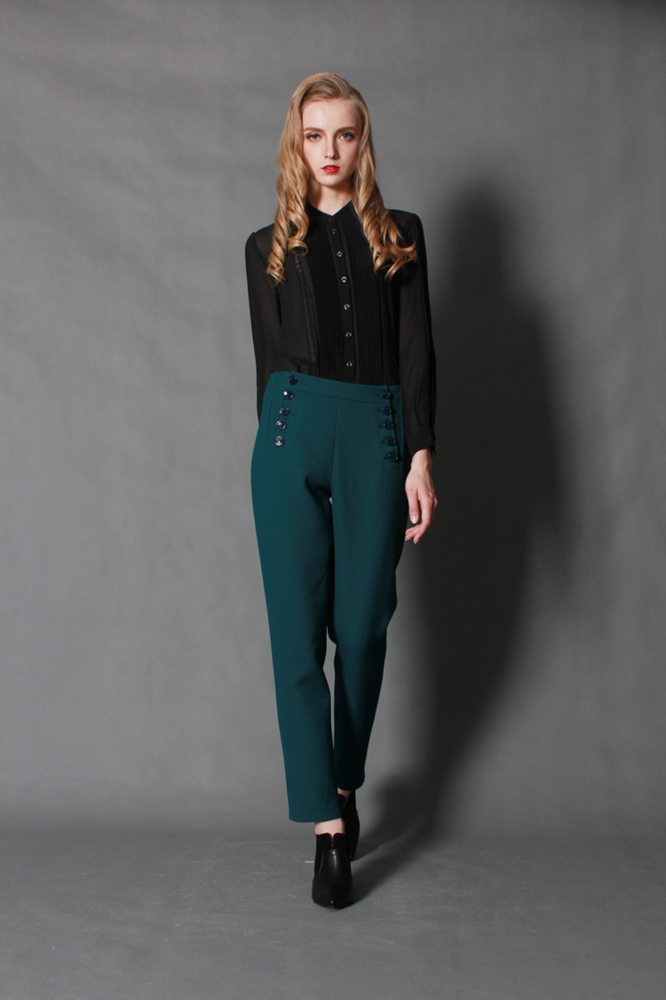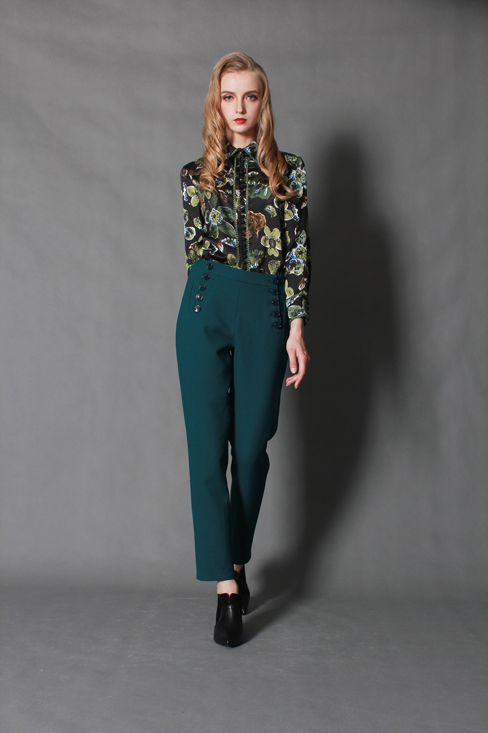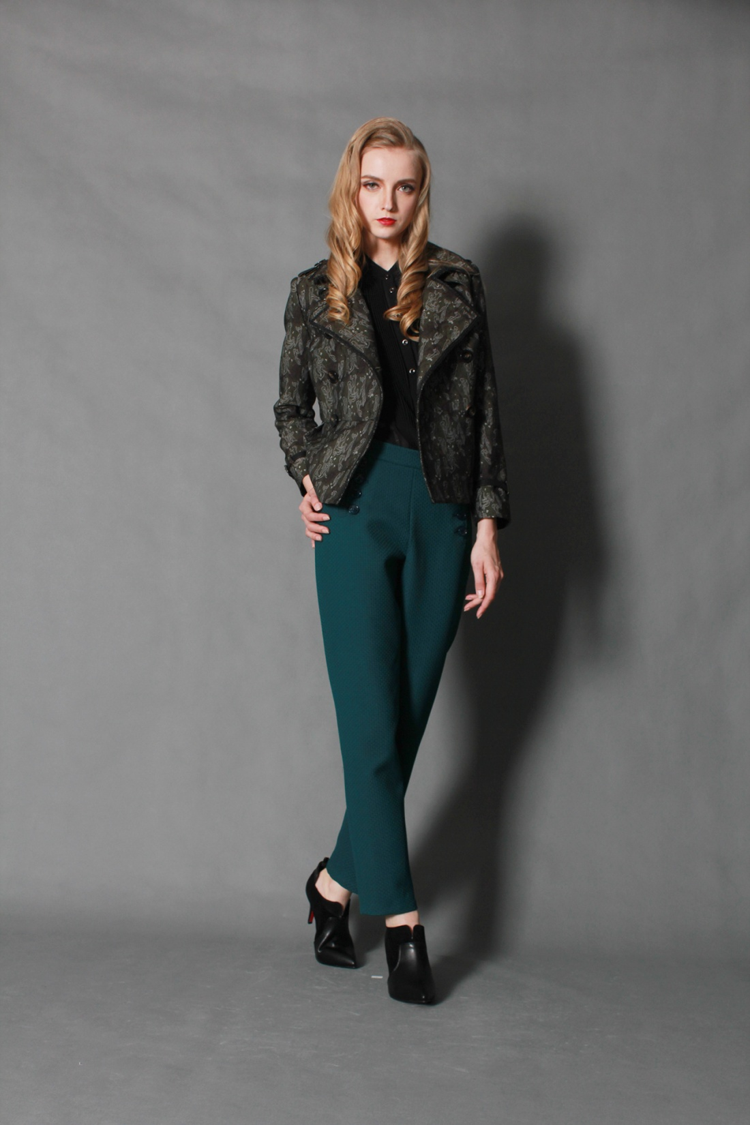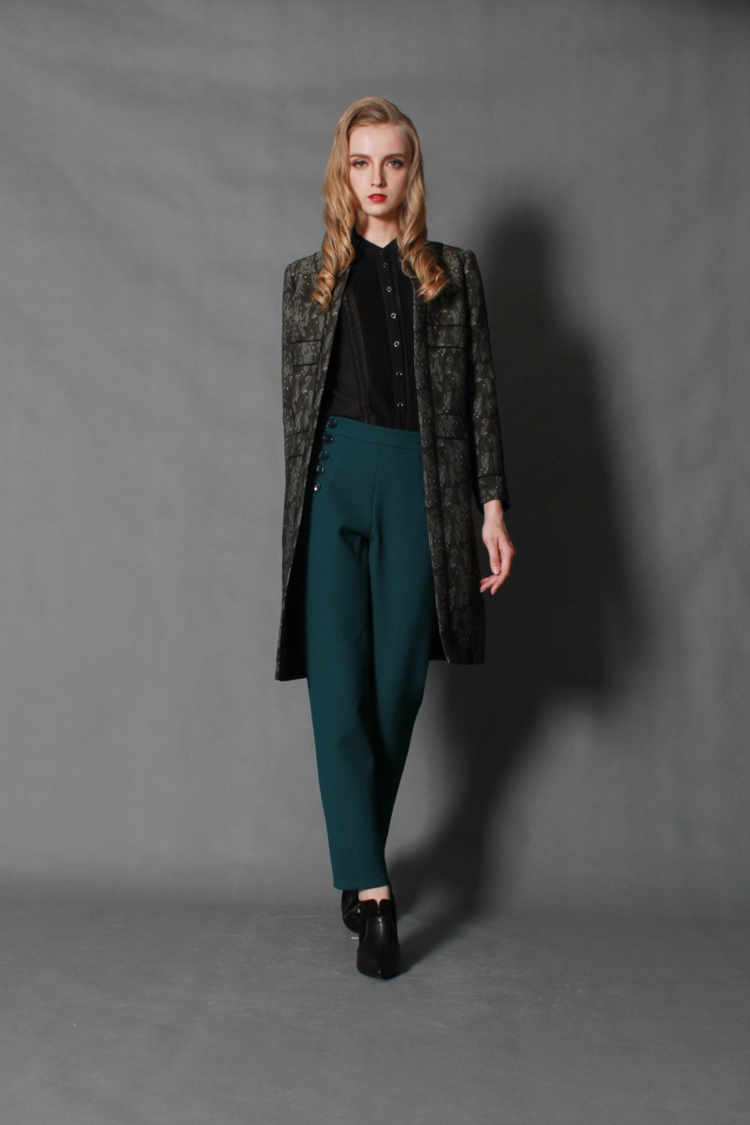 源自公元前10000年地中海人物群像画苔青色,与本杆艺术主题款形成绝佳搭配。弹力暗提花面料,笔直利落。双排扣点缀,让您尽显时尚奢美风情。