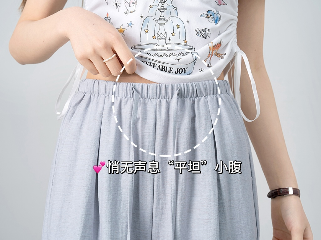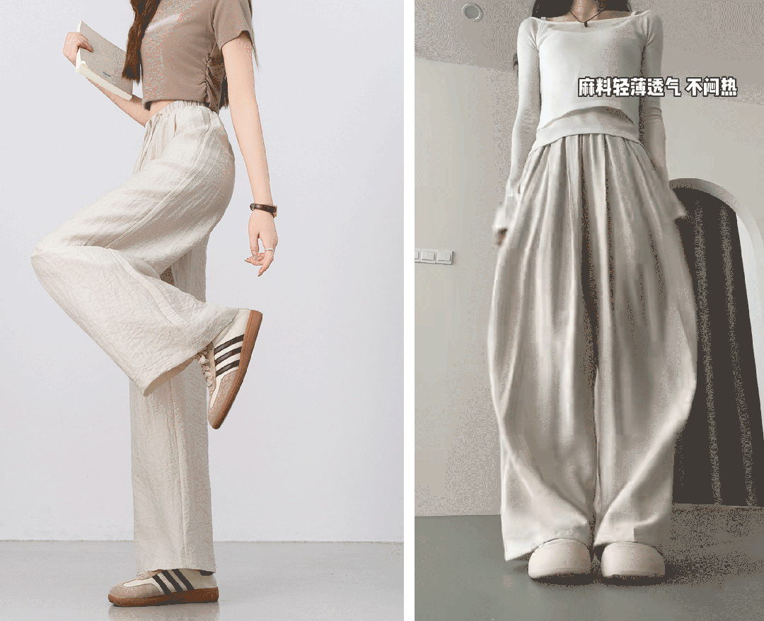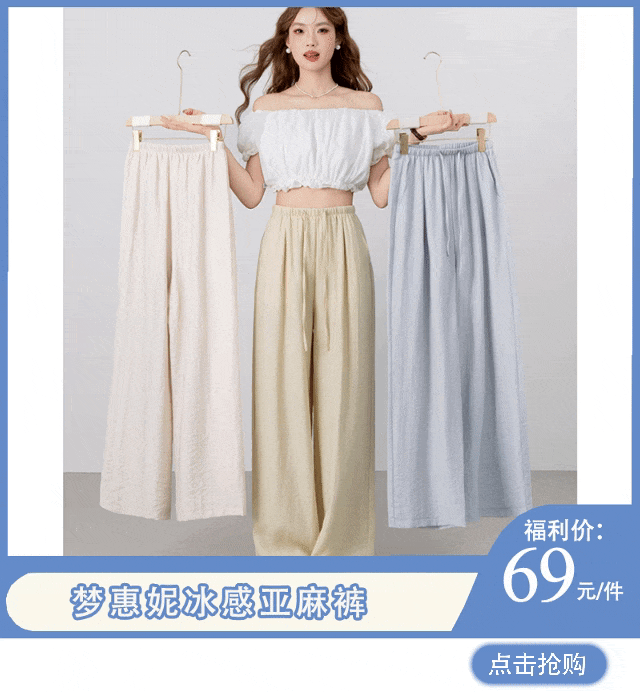 对比之下,梦惠妮的冰感麻阔腿裤,性价比就很高。