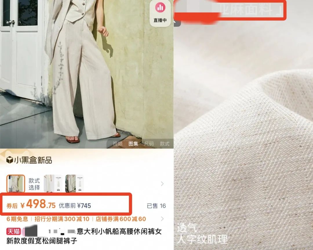 市面上这种天丝麻材质的阔腿裤,本身材质成本就高,价格贵!稍微有点名字的牌子,一条就要将近500块!
