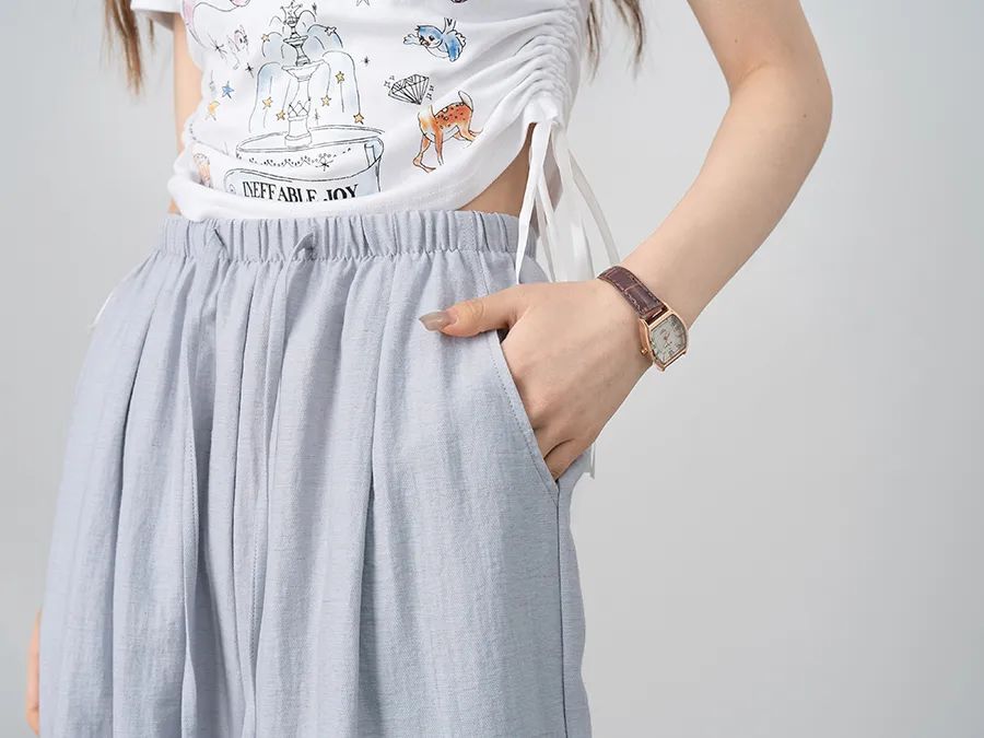 曾经觉得自己的休闲衣服缺少高级感,直到她入手了这条亚麻阔腿裤: