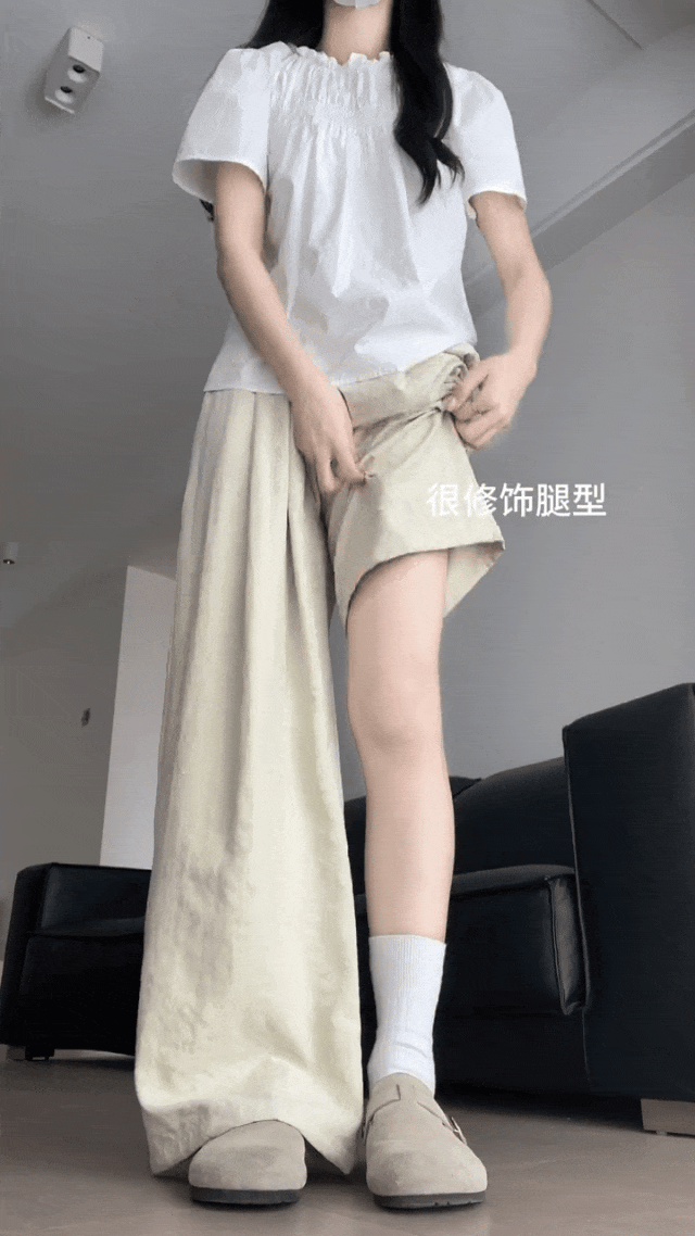 版型是专为亚洲女性身材量身打造,比传统阔腿裤窄一点点。