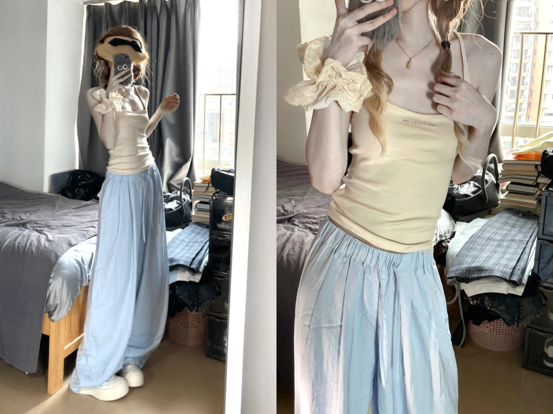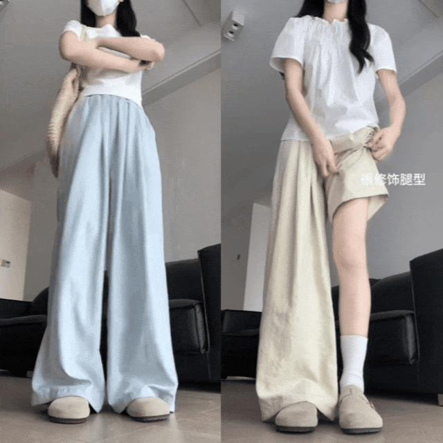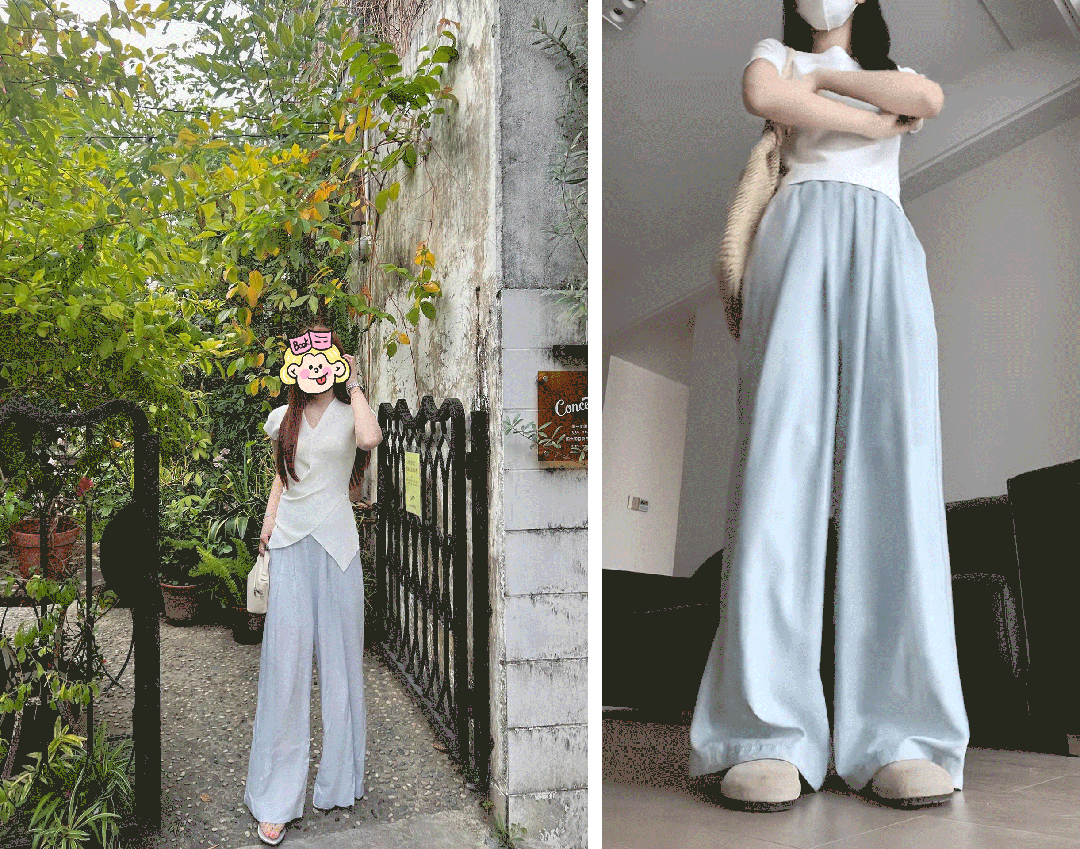 网上看人家穿阔腿裤是细长直,买来穿到自己身上,卡裆、假胯宽的问题全显现出来了,一上身仿佛再向全世界宣告:快来看我的两条大!粗!腿!