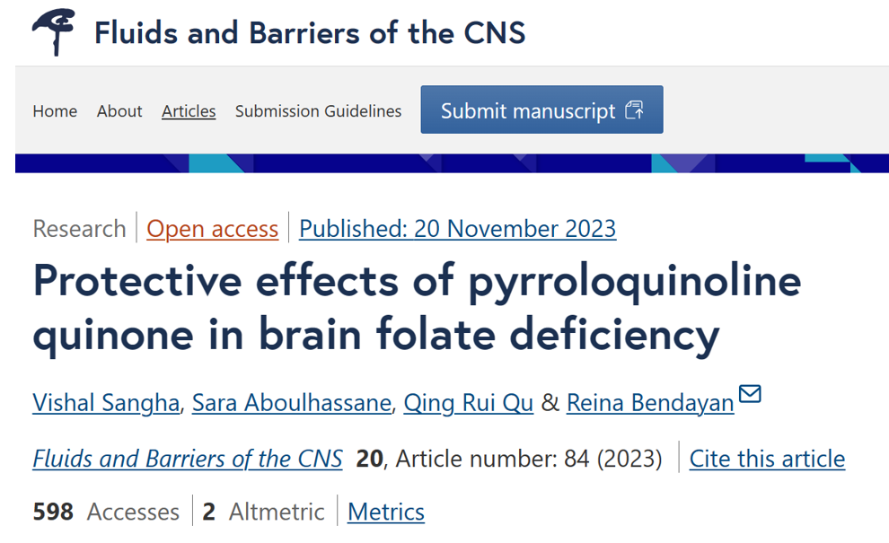 近日,于Fluids Barriers CNS杂志上发表了题为“Protective effects of pyrroloquinoline quinone in brain folate deficiency.”的文章,该研究中探索了叶酸缺乏和PQQ对炎症和氧化应激反应以及线粒体功能变化的影响。