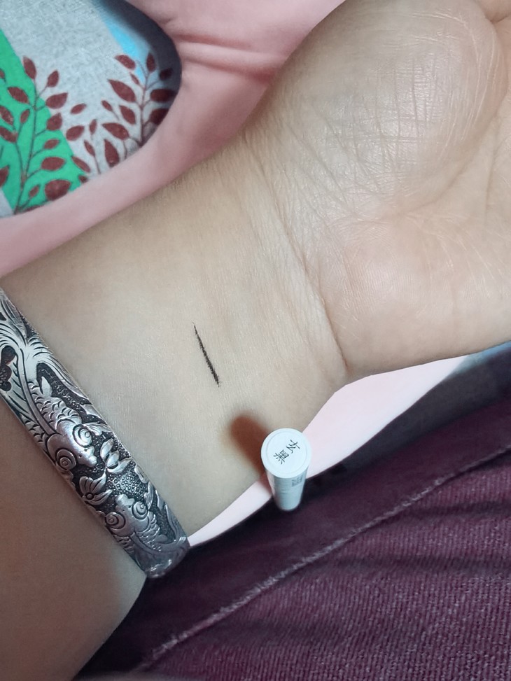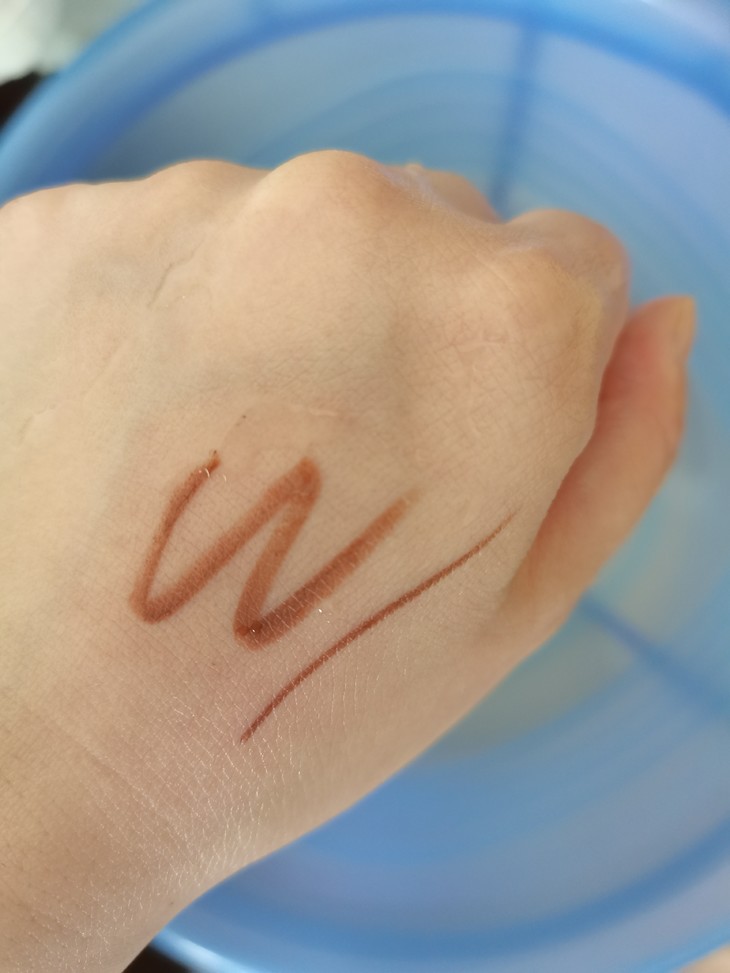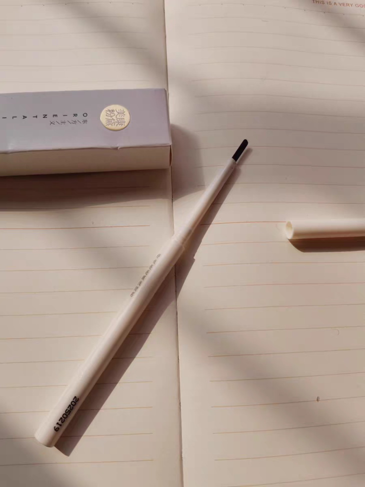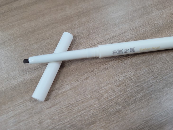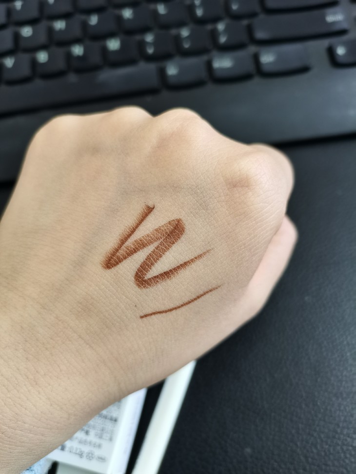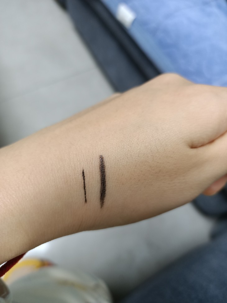第一次见这么细的眼线胶笔,之前用过粗的黑色,所以这次买了乌棕色,比黑色的更自然,颜色刚刚好不突兀。拆开包装拿到手就很惊喜,颜值一如既往的高,而且笔体很重,不像我以前买的杂牌的那些轻飘飘的没分量。扁头的画起来更方便,而且很顺滑,很好画,很容易上色,一笔成型,新手党必入款。