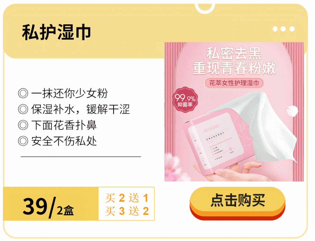 闺蜜小冉经常跟我抱怨,婚后她老公嫌她下面黑,已经三个月没碰她了。用上这个花萃护理湿巾,没想到效果出乎意料的好。