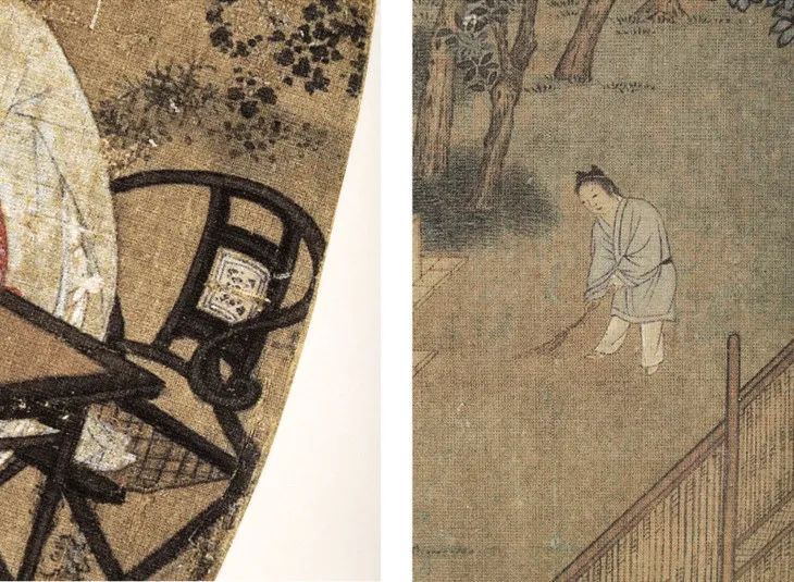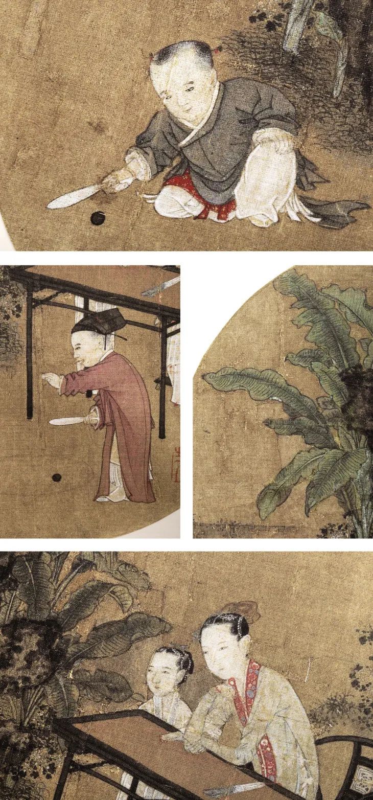 此图绘南宋贵族庭院里的婴戏小景。构思巧妙,情节生动,显示出作者善于观察人物并且捕捉生活细节的能力。