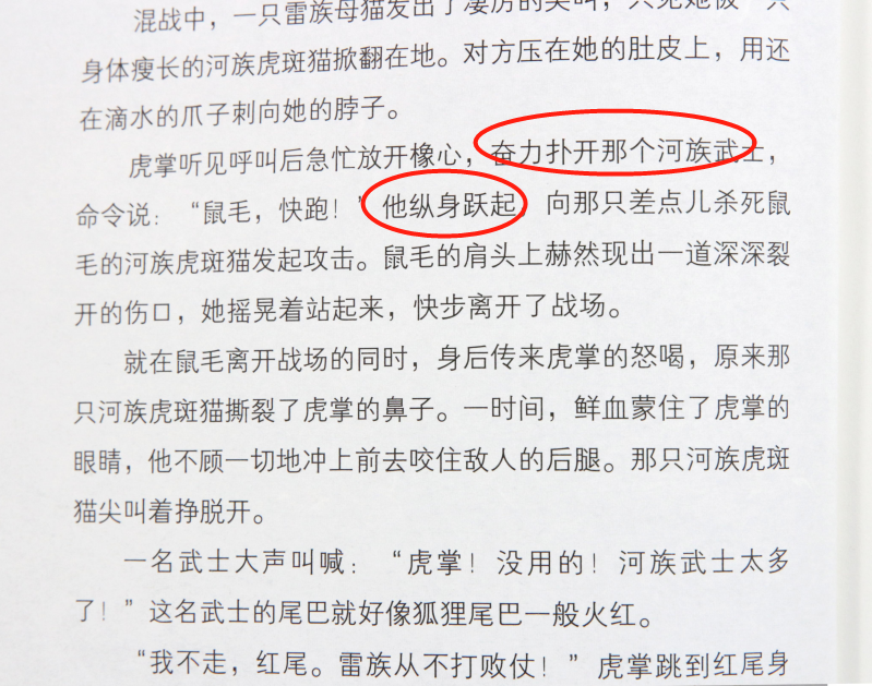这段来自《猫武士》的这段文字,一扑、一跃,激战场景仿佛就在眼前。