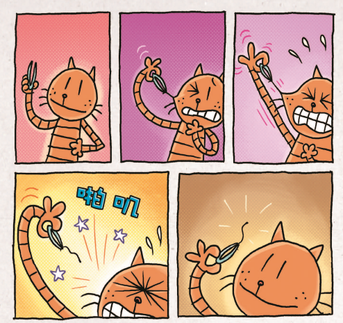 作者在《神探狗狗》这套书,用超夸张的表情和动作来表达人物的情绪,推动情节,即使不认识字的孩子读起来也毫无障碍。