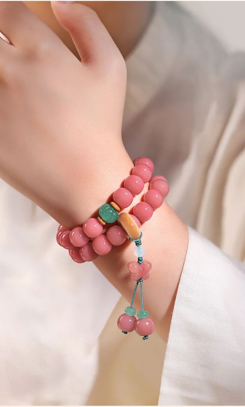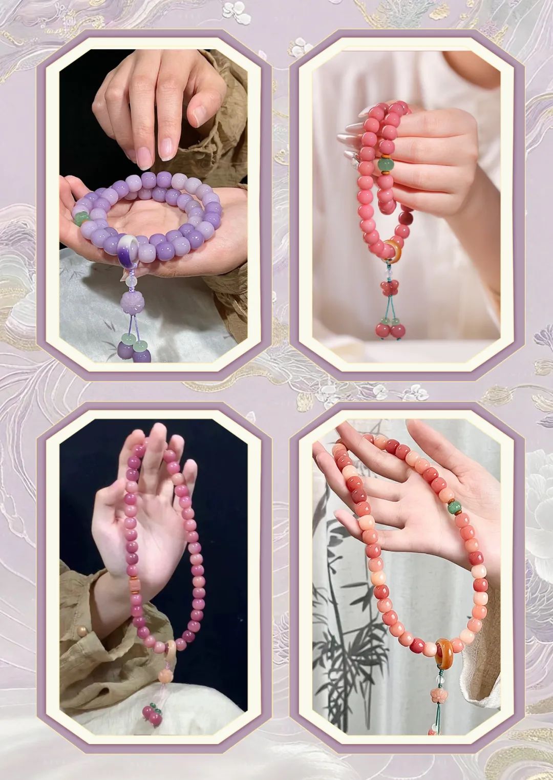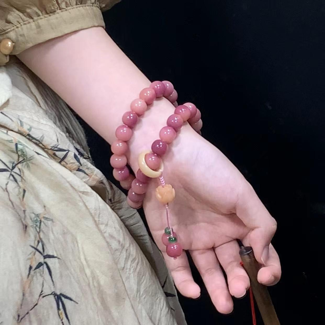 参考了冰润基底+隐现红韵的宫廷配色,似将清甜活力注入腕间,把那种淡淡的温柔感都盘进串里,越看越喜欢~